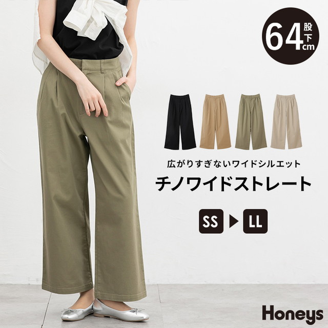 ボトムス パンツ チノパン ワイドパンツ ストレートパンツ コットン 綿 股下64 ストレッチ レディース Honeys ハニーズ チノワイドストレート(股下64cm)