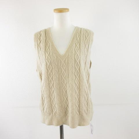 【中古】未使用品 アマジ Amaji ケーブル編みニットベスト ベージュ XL *A52 レディース