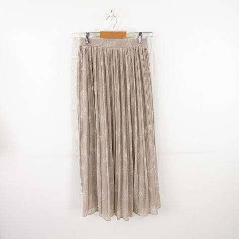【中古】コルザ COLZA プリーツフレアスカート ロング 花柄 ベージュ M *A67 レディース