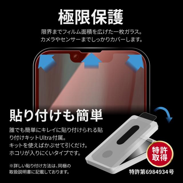 【30日間保証】【貼り付けキットUltra付属】 超硬度10H表面強化ガラス/センサー部まで保護する全画面保護/ブルーライトを約31%カット/高透明/アルコール洗浄布・ホコリ除去ラベル・クリーニングクロス付属
