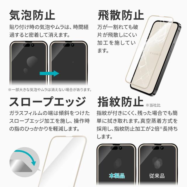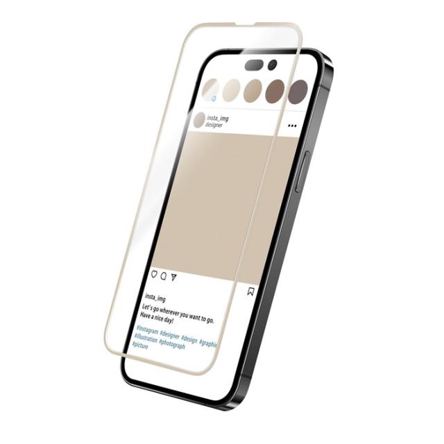 iPhone14ProMax フィルム ガラス 全面保護 フルカバー ベージュ 硬度10H 高透明 クリア 貼り付けキット付き ソフトフレーム 角割れしない 指紋防止