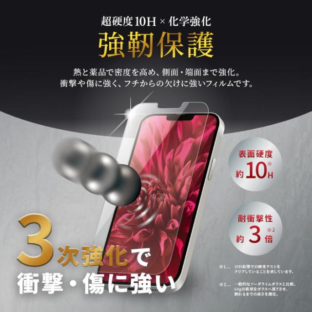 iPhone 13mini フィルム ガラス 透明 クリア 平面タイプ ケースに干渉しない 硬度10H 指紋防止 ラウンドエッジ 3次強化ガラス 衝撃吸収 耐衝撃