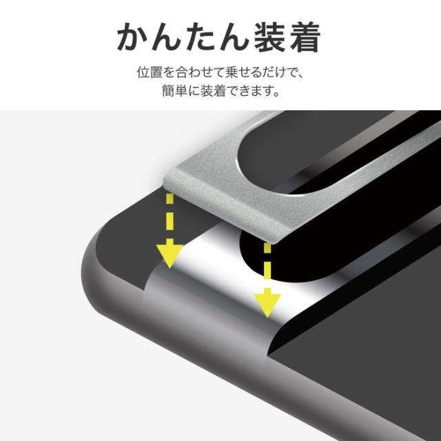 カメラレンズ周りを保護するアルミカバー/周囲を高くすることでレンズ本体を傷から守る/左右の曲面にフィットするカーブ加工/クリーニングクロス付属