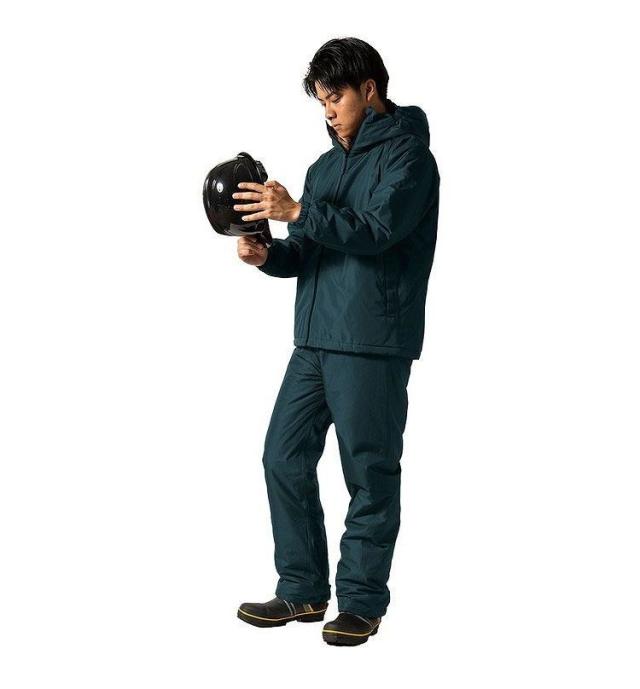 ●軽くて薄くてもしっかり暖かい中綿入り防水防寒ウェア。●上下セット。●耐水圧10,000mmH2O。●防風。●フードは丸めて収納可能。●襟部分は中綿増量。●右袖蛍光反射プリント。●サイズ:LL●素材:表地/ポリエステル100%(熱可塑性ポリウレタンラミネート)、中綿/ポリエステル100%、裏地/ポリエステル100%●カラー:ネイビー●生産国:ミャンマーミャンマーMakkuネイビー