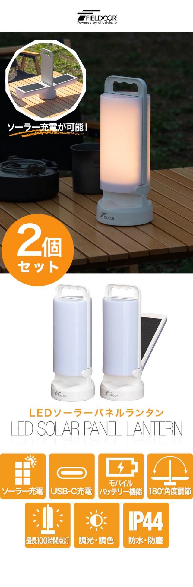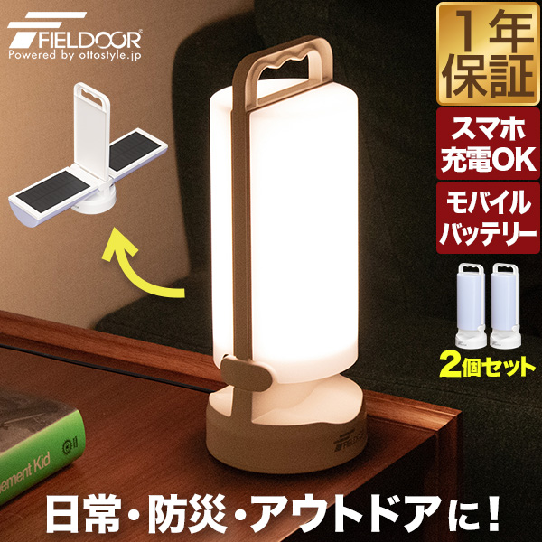 FIELDOOR ランタン LED ソーラー 2個組 USB 充電式 IP44 防水 LEDランタン ソーラーランタン LEDライト 防災グッズ 災害 非常用 最長 100時間 4400mAh モバイルバッテリー 調光 調色 太陽光 停電対策 懐中電灯 アウトドア 1年保証 送料無料