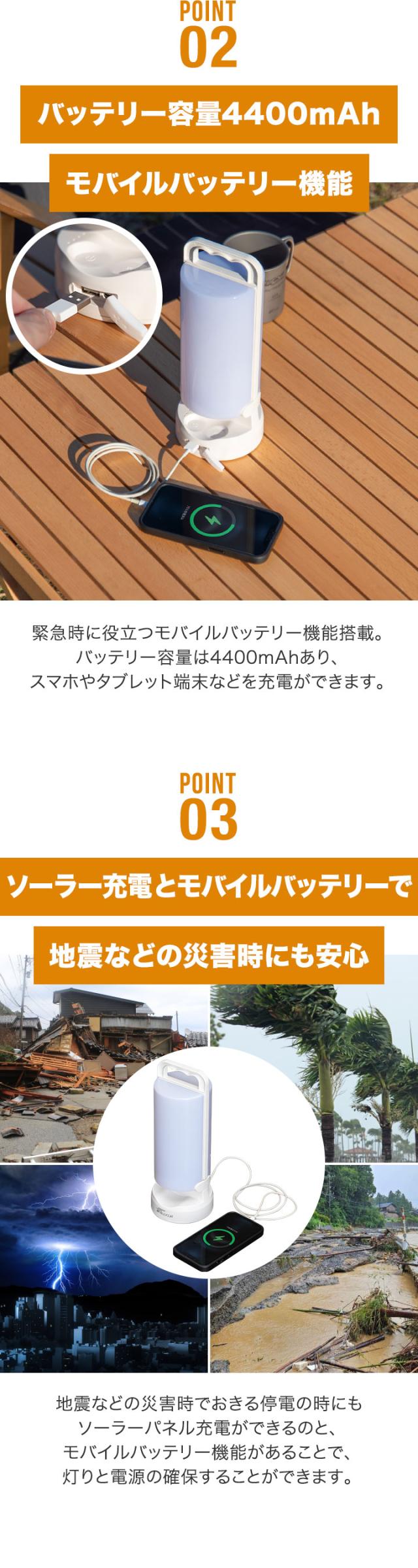 ランタン ランプ ライト 懐中電灯 LED LEDランタン LEDライト 明るい ルーメン 無段階調光 明るさ 調色 色味 電球色 昼光色 昼白色 ソーラー ソーラーパネル 太陽光 太陽光発電 スマホ スマホ充電 モバイルバッテリー 充電器 USB 充電式 給電 蓄電 電源 iphone Android スマートフォン 携帯電話 アクセサリー ガジェット ギア IP44 防水 生活防水 防塵 防水防塵 防災グッズ 防災セット 防災ライト ハンディライト 防災 避難用具 地震対策 災害対策 避難グッズ 非常持出袋 防災用品 非常時 緊急時 災害時 常備 被災 備え 万が一 いざという時 身を守る 身の安全 停電 停電対策 非常灯 灯り 100時間 4400mAh アウトドアグッズ キャンプ キャンプ用品 キャンプギア オートキャンプ 車中泊 ホワイト 白 インテリア 読書 読書灯 卓上ライト 照明 間接照明 置く 置き型 おしゃれ シンプル 北欧 韓国風 枕元 玄関 リビング 寝室 吊るす 吊り下げ ぶら下げる 掛ける 緊急地震速報 携帯 モバイル ポータブル 防災士 推奨 監修 持ち手 ハンドル 充電残量 残量ランプ スポーツ・アウトドア アウトドア ライト・ランタン ランタン・オイルランプ