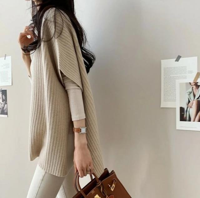 ニット ベスト ポンチョ風 レディース サイドスリット トップス ゆったり プルオーバー 重ね着 暖かい 韓国ファッション 可愛い 体型カバー 柔らか 通勤 通学 お洒落 無地 大きいサイズ 春 秋