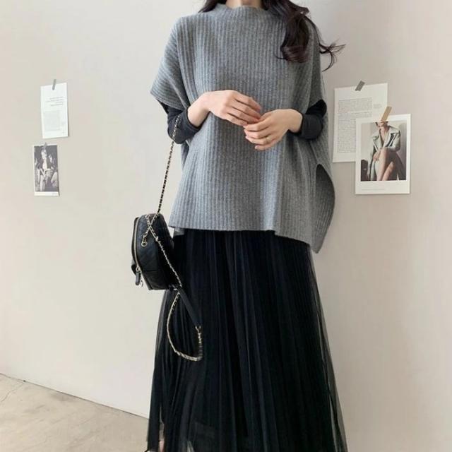 ニット ベスト ポンチョ風 レディース サイドスリット トップス ゆったり プルオーバー 重ね着 暖かい 韓国ファッション 可愛い 体型カバー 柔らか 通勤 通学 お洒落 無地 大きいサイズ 春 秋 de059n1n1x7 de059n1