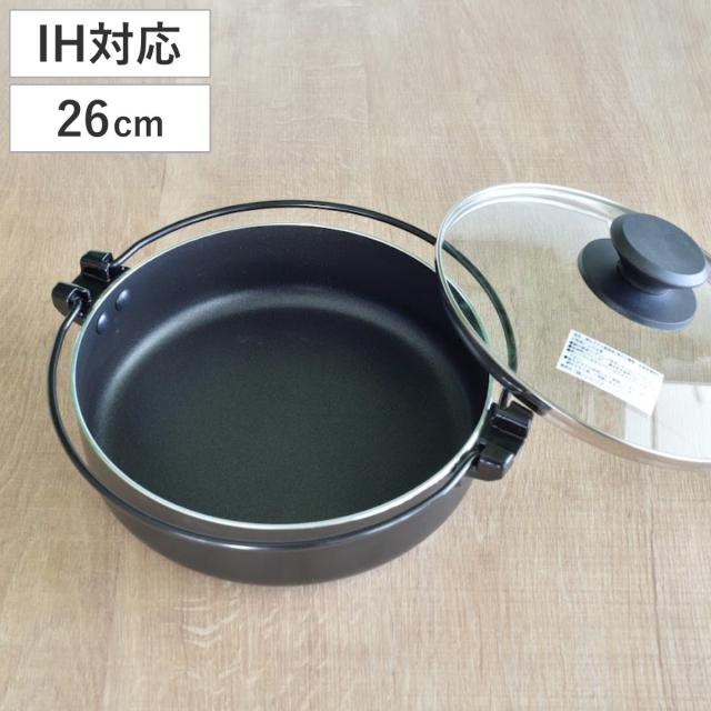 すき焼き鍋 26cm IH対応 旨宴 ガラス蓋付き ( ガス火対応 オール熱源対応 卓上鍋 なべ 鍋 ひとり鍋 フタ付き 3人用 4人用 すき焼き 26センチ アルミ製 調理器具 鍋料理 お鍋 )
