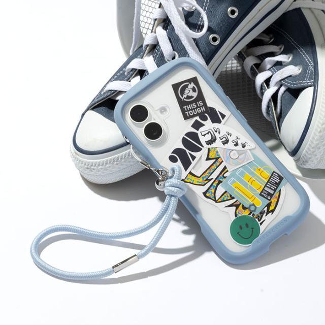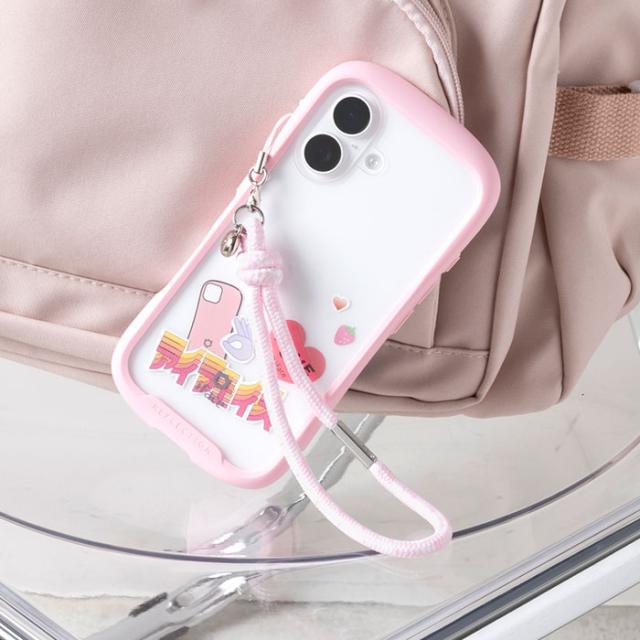 シグネチャーボールが搭載されたiFaceスマホケースは、ストラップをケース上部に装着可能。