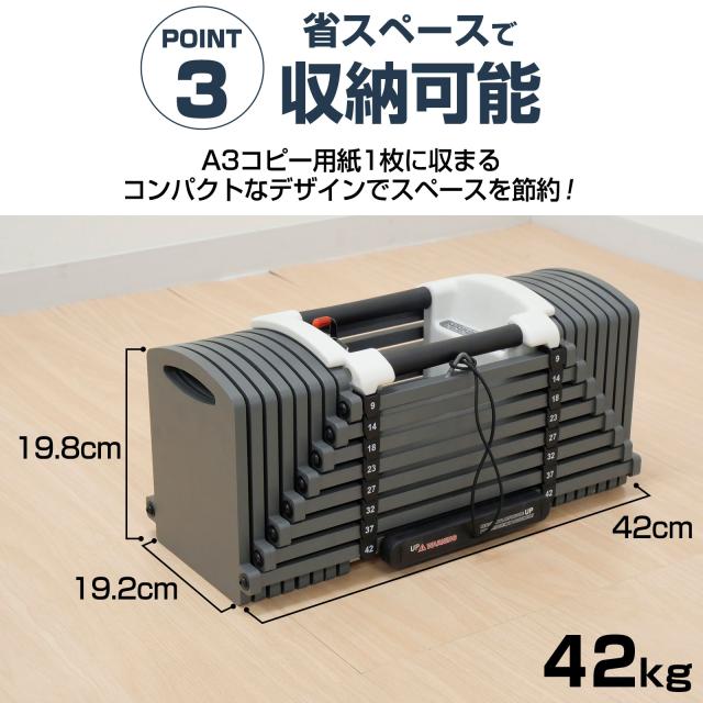 ボディービルダーでもご満足頂ける最大42kgの3種類のダンベルからお選びいただけます!