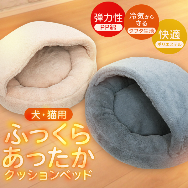 クッションベッド ふかふか あったか 寝袋 ドーム型 ペットベッド 猫用 犬用 手洗い可能 ベッド 無地 シンプル 滑り止め付き 寝床 可愛い 秋冬 クッション型 猫ベッド かわいい キュート ネコちゃん ワンちゃん お昼寝 グレー ベージュ もこもこ 犬ベッド ペット用品