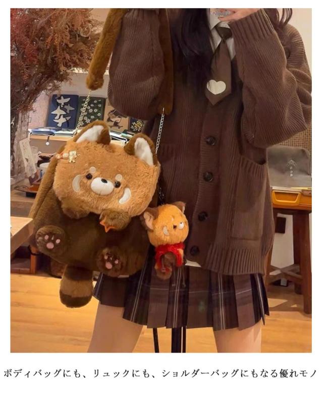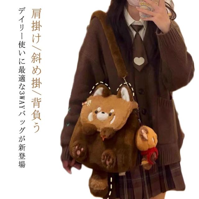 | 肩掛け/斜め掛/背負う デイリー使いに最適な3WAYバッグが新登場 ボディバッグにも、リュックにも、ショルダーバッグにもなる優れモノ モコモコ素材の動物がキュート!毎日かわいいこの子を背負ってウキウキ気分でお出かけ♪ モフモフした肌触りのぬいぐるみが目を惹く派手カワグッズ。 個性派デザインのバッグをお探しの方にオススメです。 | |