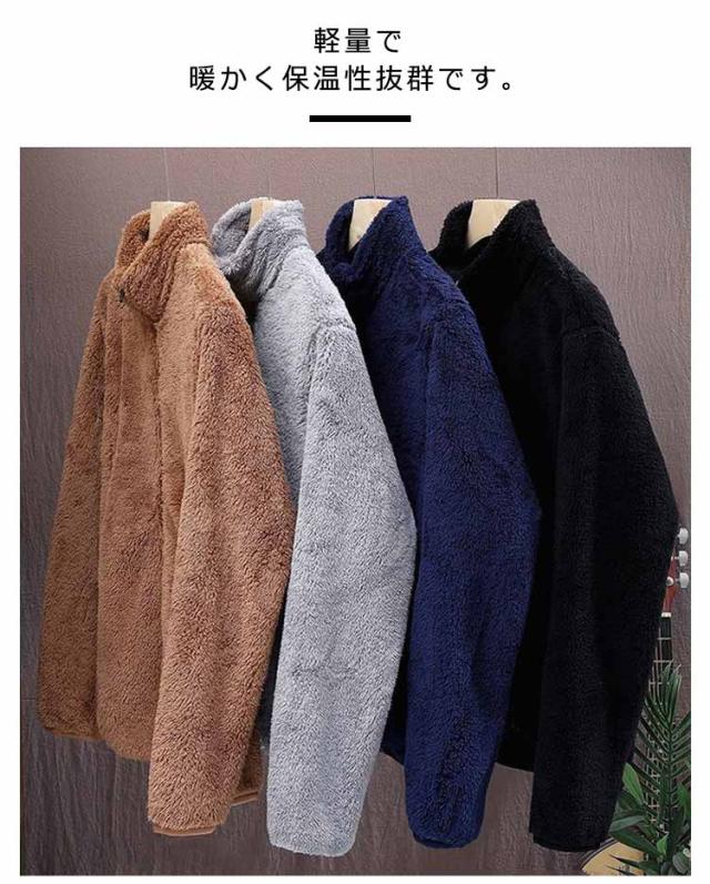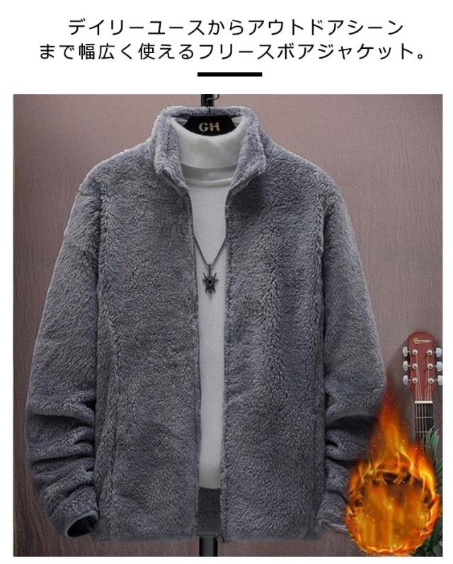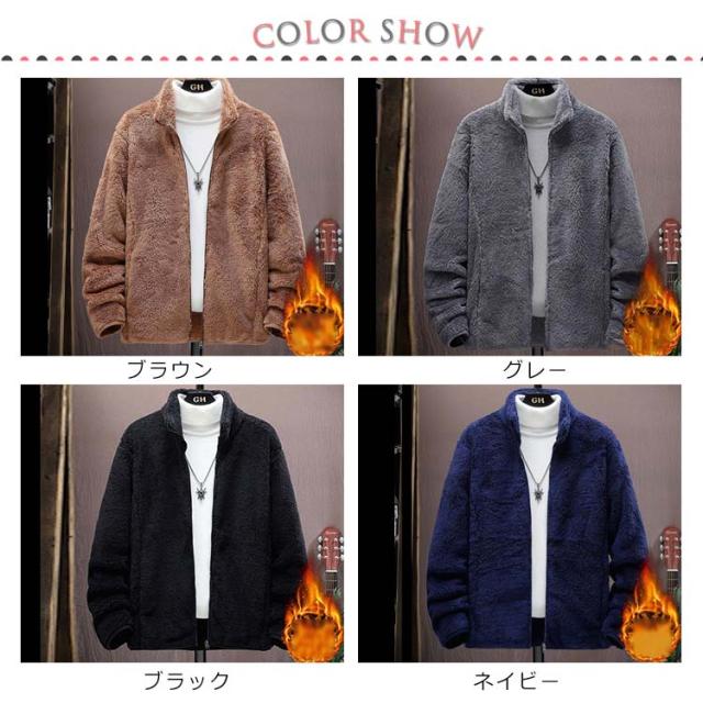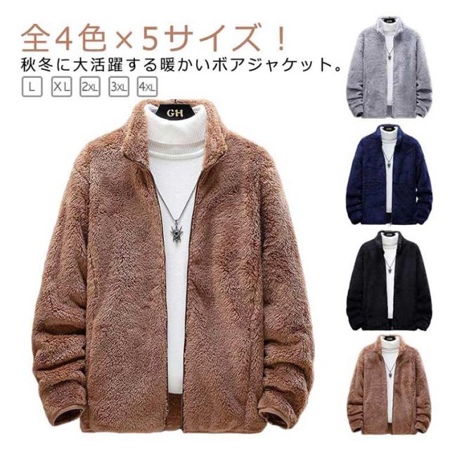 ボア フリース スタンドカラー アウター 極暖 ブルゾン ボアジャケット グレー フリースジャケット ジャケット 立ち襟 ふわふわ もこもこ 暖かい 大きいサイズ 秋冬 ブラウン 極暖 ブラック ネイビー L XL 2XL 3XL