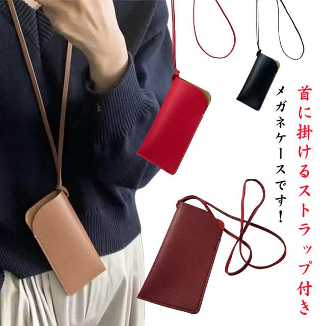 メガネケース 首掛け Uレザー レディース メンズ 差込型 眼鏡ケース おしゃれ スリム メガネ入れ めがねケース ストラップ付き ソフト グラスホルダー 老眼鏡 老眼鏡ケース サングラス サングラスケース 軽量 コンパクト 保護 収納 縦型