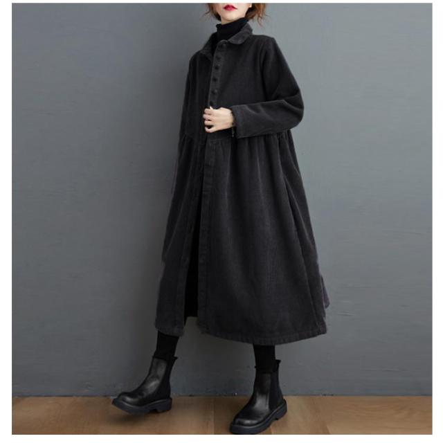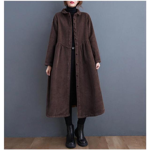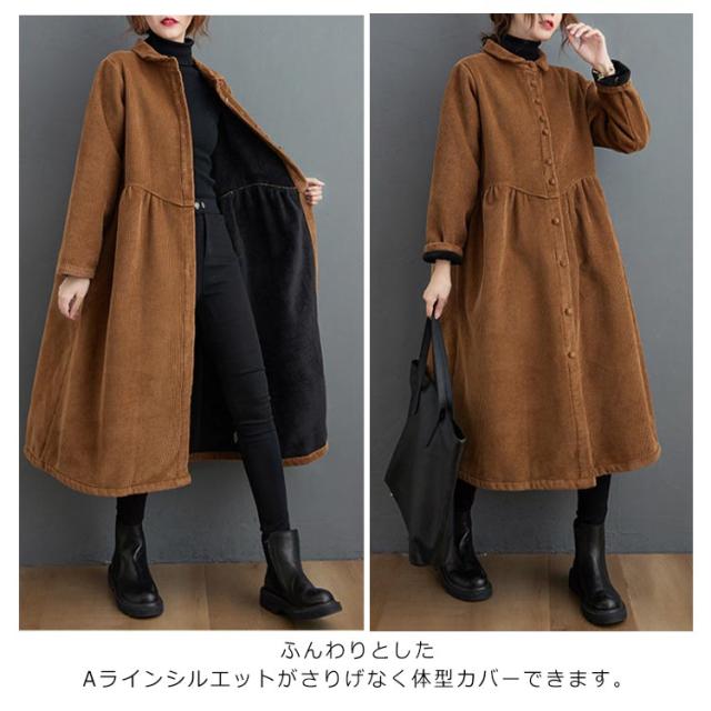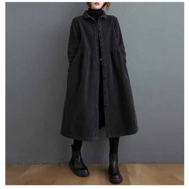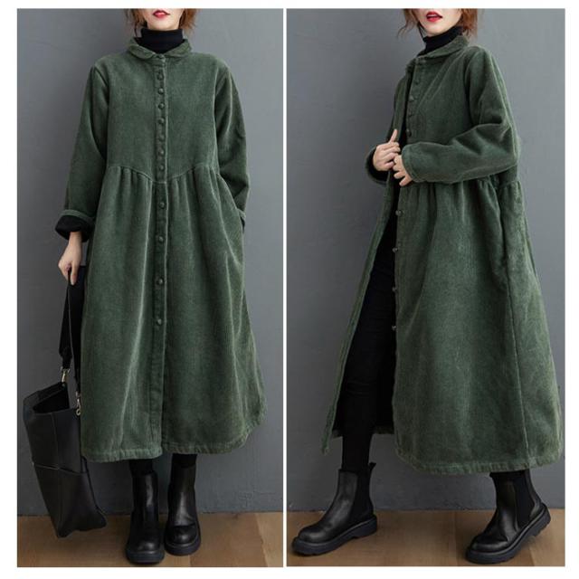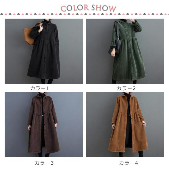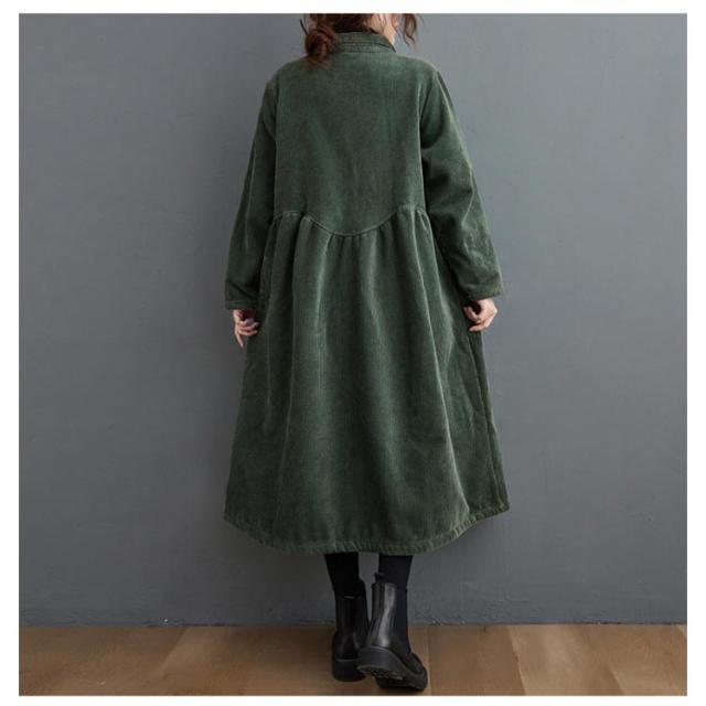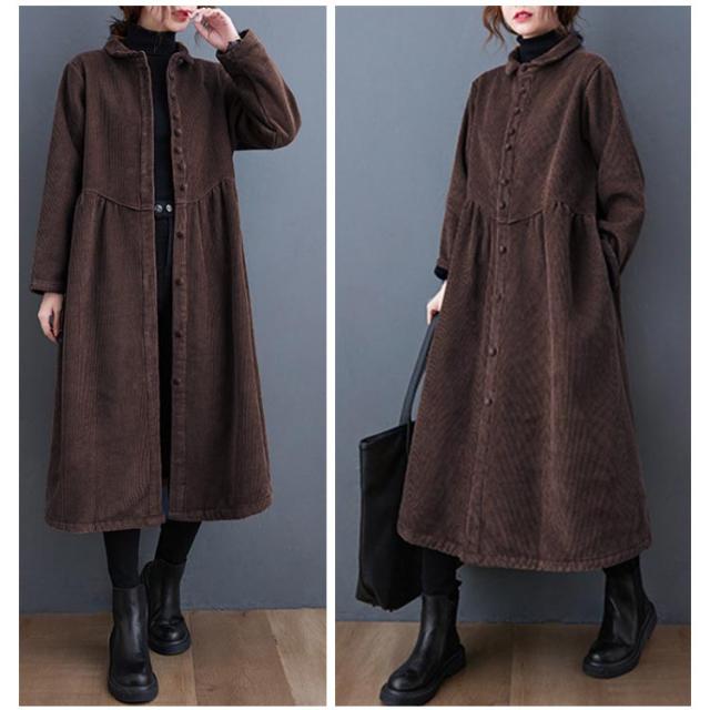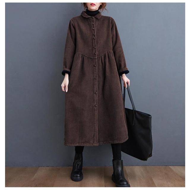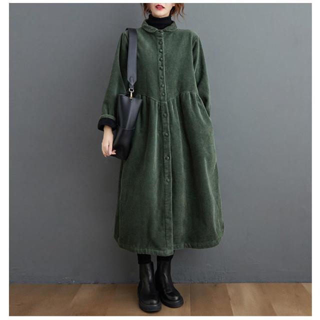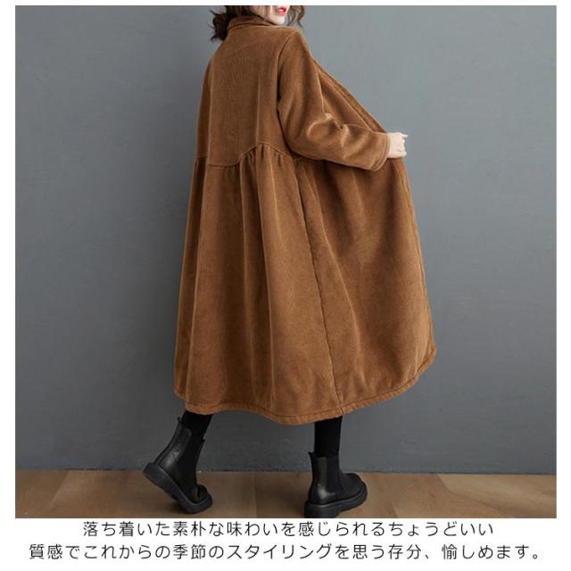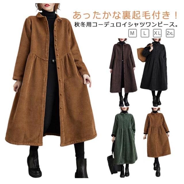 コーデュロイ ロングワンピース レディース 前開き シャツワンピース ビンテージ ロングシャツ 秋冬 裏起毛ワンピース 大きいサイズ ゆったり コーデュロイワンピース 長袖 体型カバー 厚手 カジュアル 暖かい コーデュロイ 防寒 M L XL