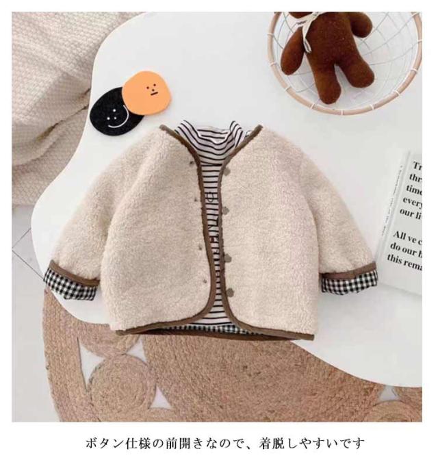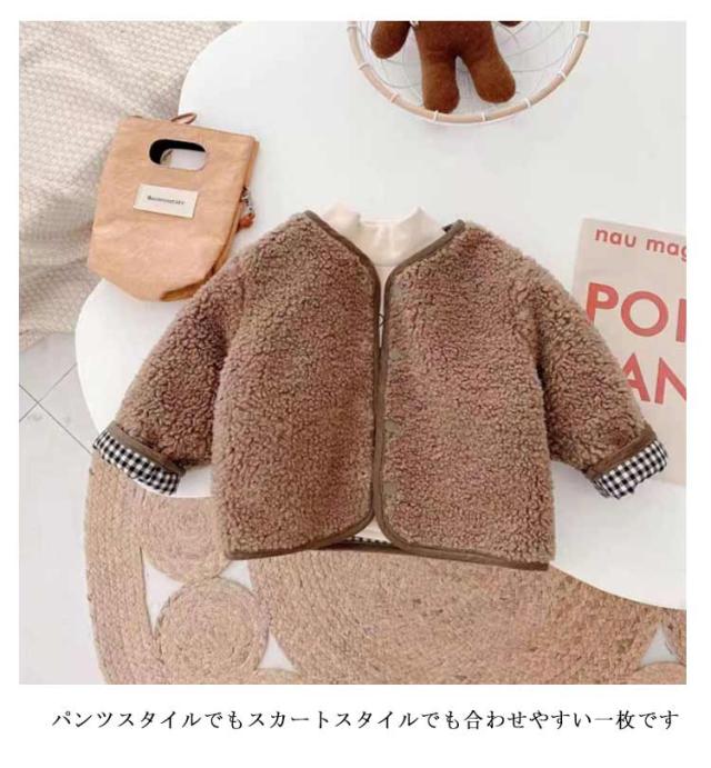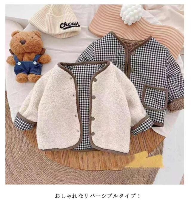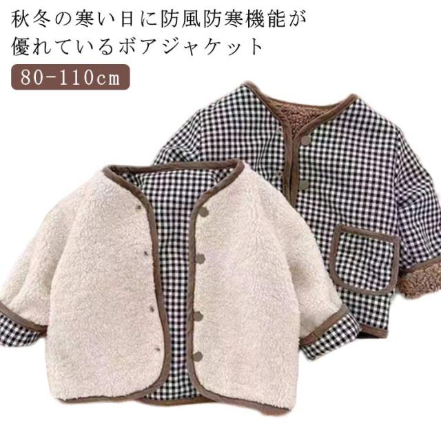 チェック柄 コート ボアコート 防寒 ボアブルゾン 赤ちゃん 子供服 モコモコ 韓国風 ボアアウター 80 軽量 ジャケット あたたかい ユニセックス 通園 冬服 女の子 男の子 アウター 通学 ノーカラー ベビー キッズ 暖かい 韓国風 90 100 110 送料無料 ギフト