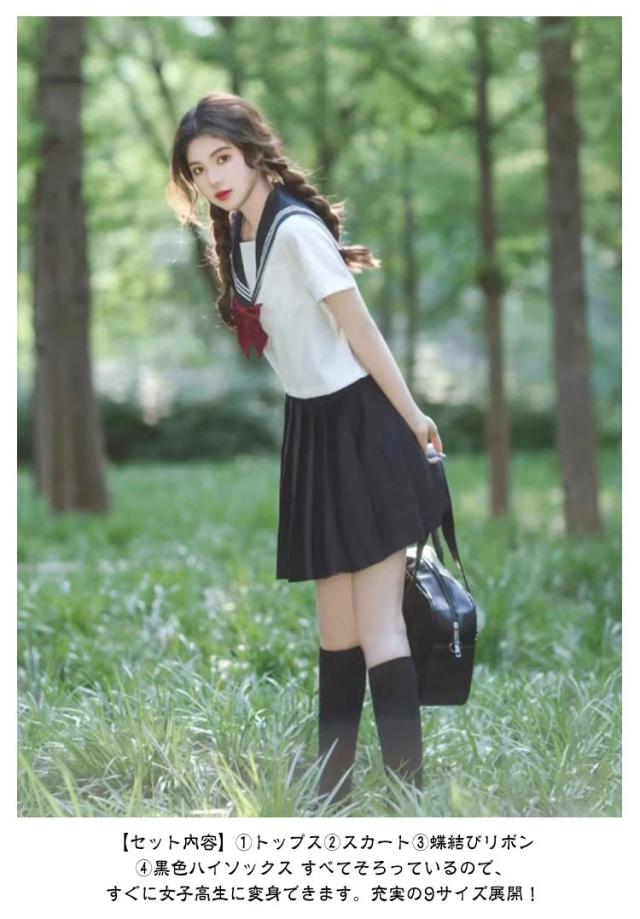 JK制服 半袖 4点セット 女子高生 セーラー服 長袖 スカート かわいい 制服 学生服 シャツ コスプレ ロング丈 セーラー服 ロングスカート ホワイト 女子高校生 上下セット 女子 リボン 学園祭 文化祭 セーラー服 ネイビー 大きいサイズ