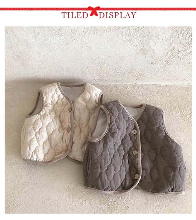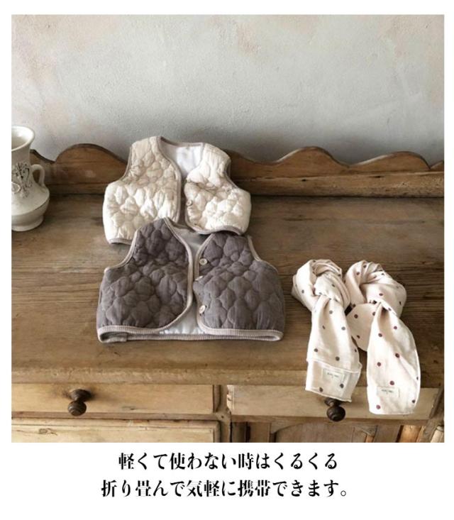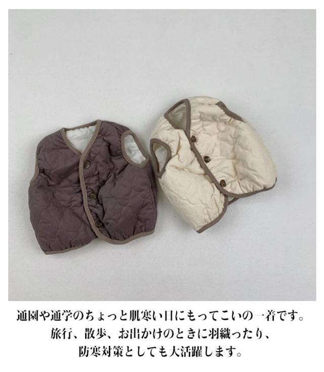 | 厳選した素材で作られており、肌触りは柔らかで着心地抜群! 軽量な中綿を使用しましたので保温性が高く暖かいです。 しっかりした生地と丁寧な縫製で耐久性が優れ、長持ちすることができます。 袖がないので遊ぶときにも自由に動けます。前開きの仕様なので着脱も便利です。 使い回しの効くデザインでどんなコーデにも合わせて使えます。春から冬まで長く使えて、応用性最高の定番アイテム! 軽くて使わない時はくるくる折り畳んで気軽に携帯できます。 通園や通学のちょっと肌寒い日にもってこいの一着です。旅行、散歩、お出かけのときに羽織ったり、防寒対策としても大活躍します。 | |