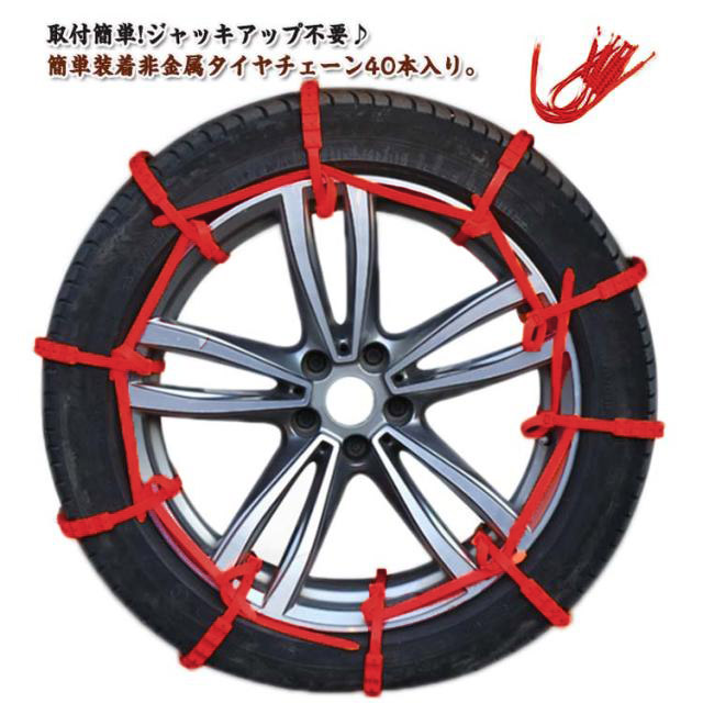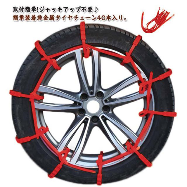 【40本セット】 タイヤチェーン 非金属 雪チェーン 簡易型 スクーター用 滑り止めチェーン 取り付け簡単 タイヤベルト スノーチェーン 結束バンド 雪道 泥道 スリップ防止 悪路対応 滑り止め 事故防止 ホイールチェーン 冬 雪道 汎用 緊急用 車用チェーン 車用品