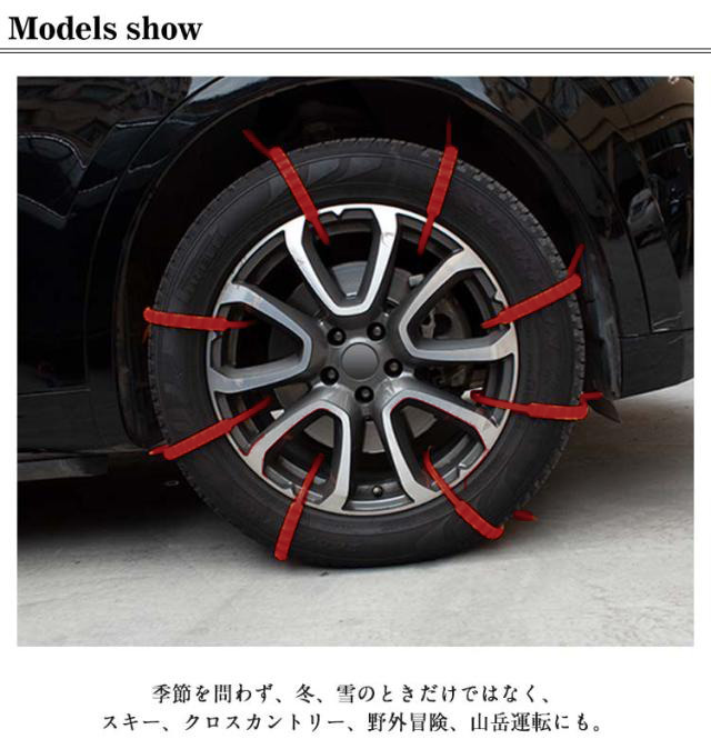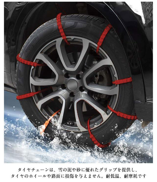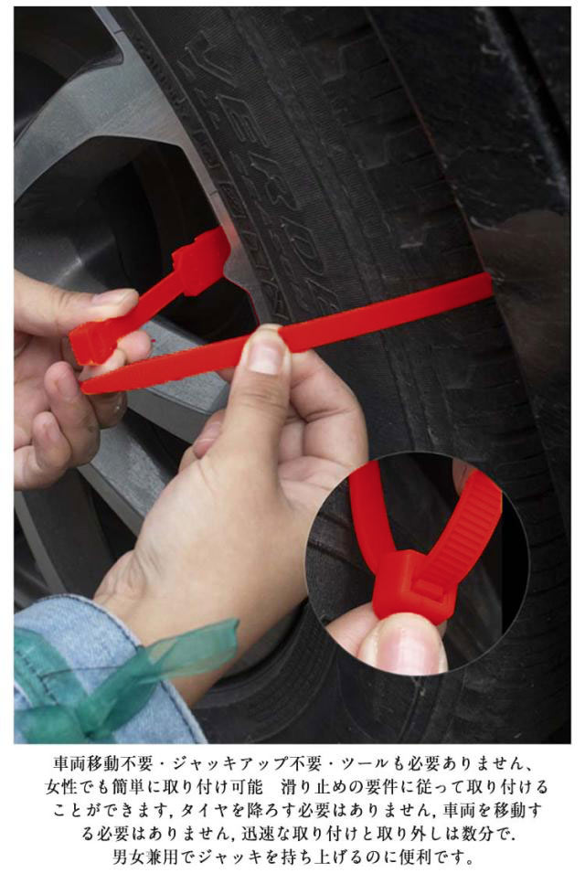 | 取付簡単!ジャッキアップ不要♪簡単装着非金属タイヤチェーン40本入り。 タイヤチェーンは、雪の泥や砂に優れたグリップを提供し、タイヤのホイールや路面に損傷を与えません。耐低温、耐摩耗です 車両移動不要・ジャッキアップ不要・ツールも必要ありません、女性でも簡単に取り付け可能 滑り止めの要件に従って取り付けることができます, タイヤを降ろす必要はありません, 車両を移動する必要はありません, 迅速な取り付けと取り外しは数分で.男女兼用でジャッキを持ち上げるのに便利です。 突然の豪雪にも即対応、冬の必需品! 耐摩耗性、耐低温性、強靭性、耐久性に優れた高品質のナイロン素材を使用。 季節を問わず、冬、雪のときだけではなく、スキー、クロスカントリー、野外冒険、山岳運転にも。 雪道、山の道、悪い道、泥のあるツルツル道で、大雪でも、レジャー、旅行、会社の通勤や帰省などに影響を与えません。 | |
