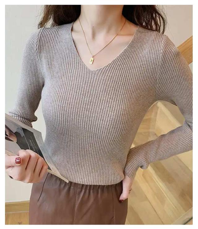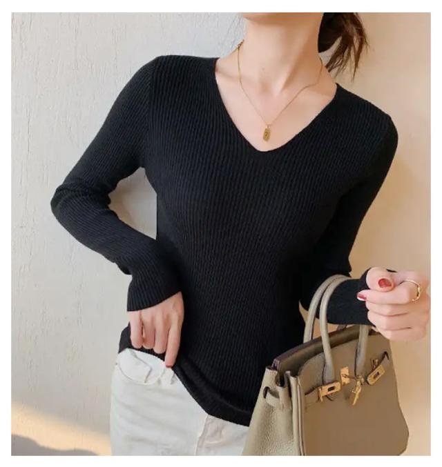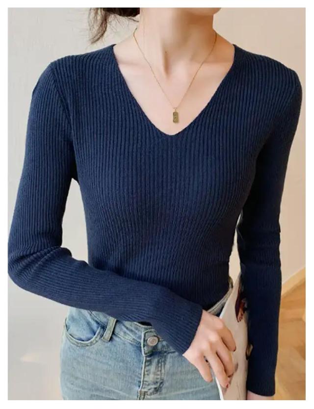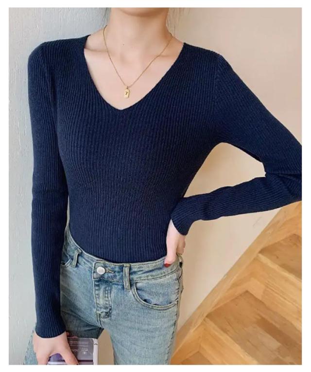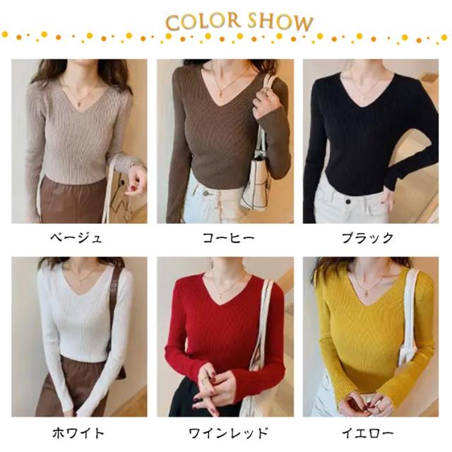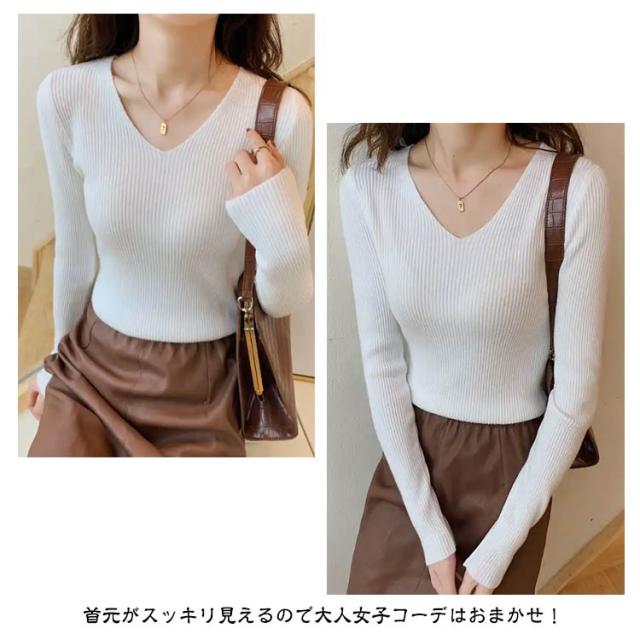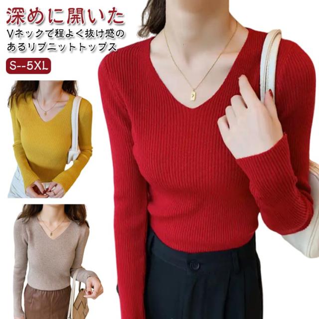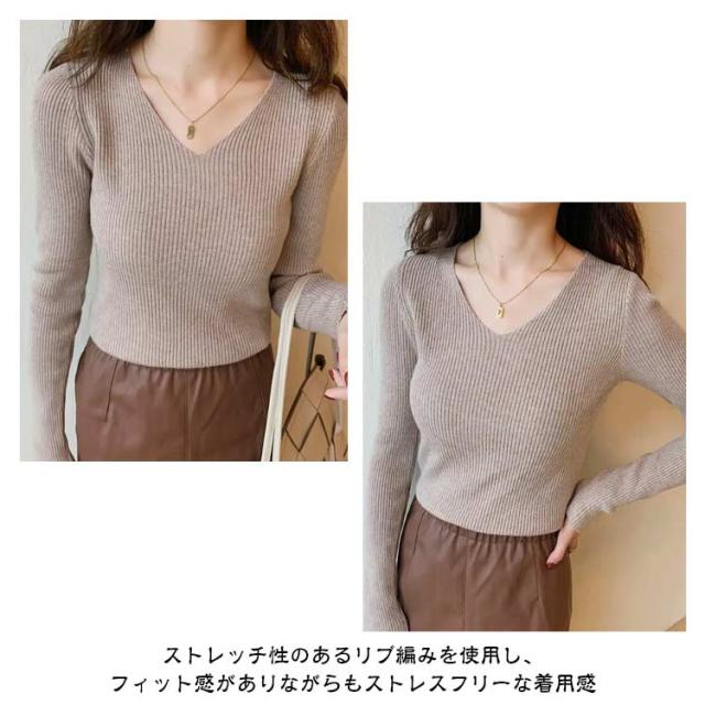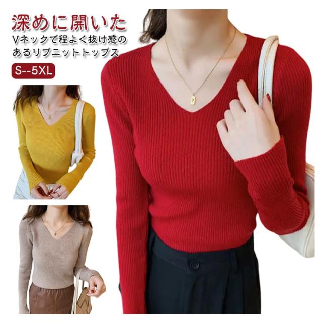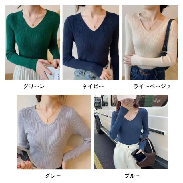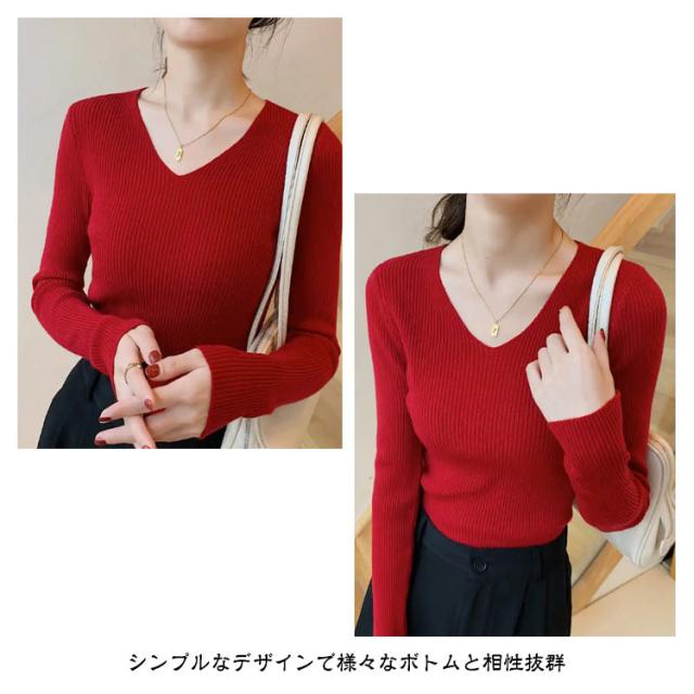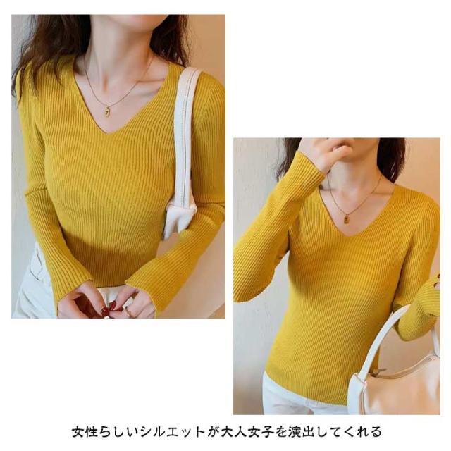 黒 ニット リブ ネイビー ニットプルオーバー トップス Vネック 秋冬 リブニット ストレッチ トップス 長袖 インナー ニット 大きいサイズ 柔らか 薄手 おしゃれ 無地 シンプル ミニマル セーター 通勤 通学 タイト 白 茶 紺 リブ グリーン ブルー