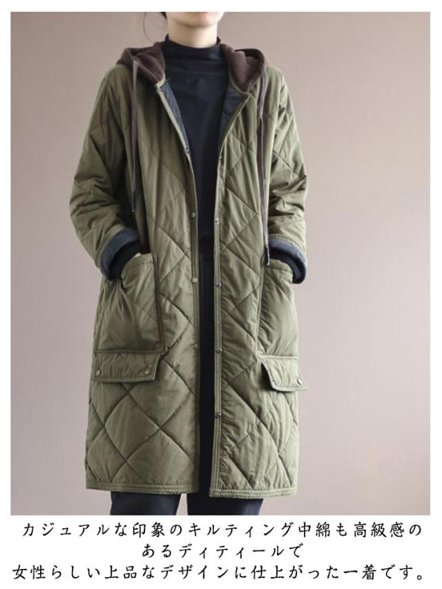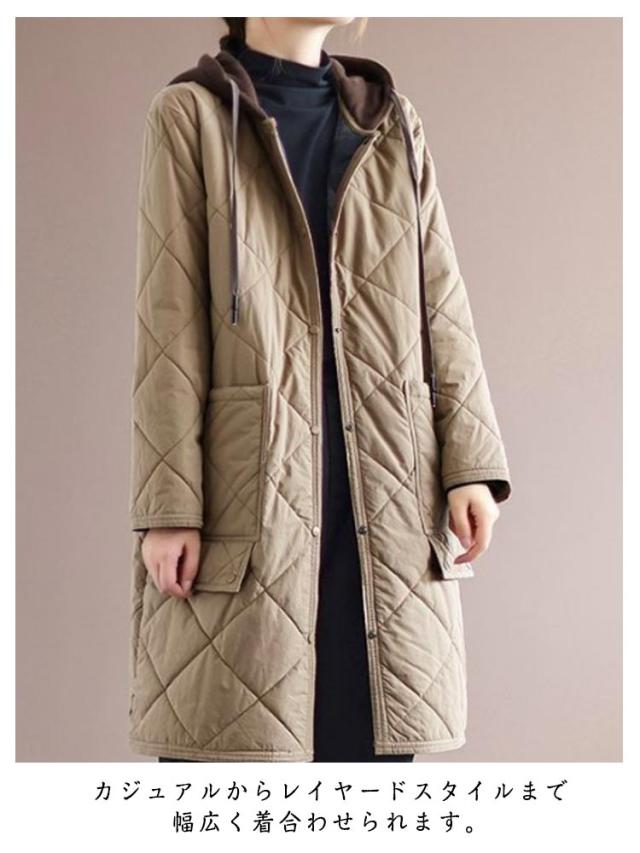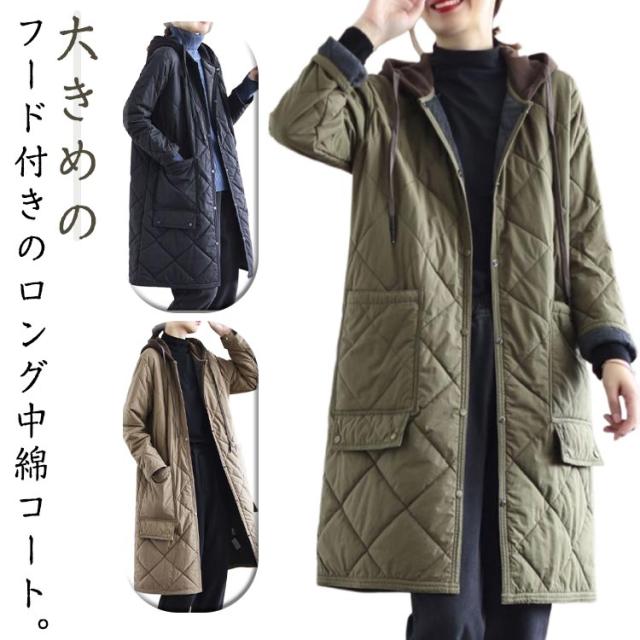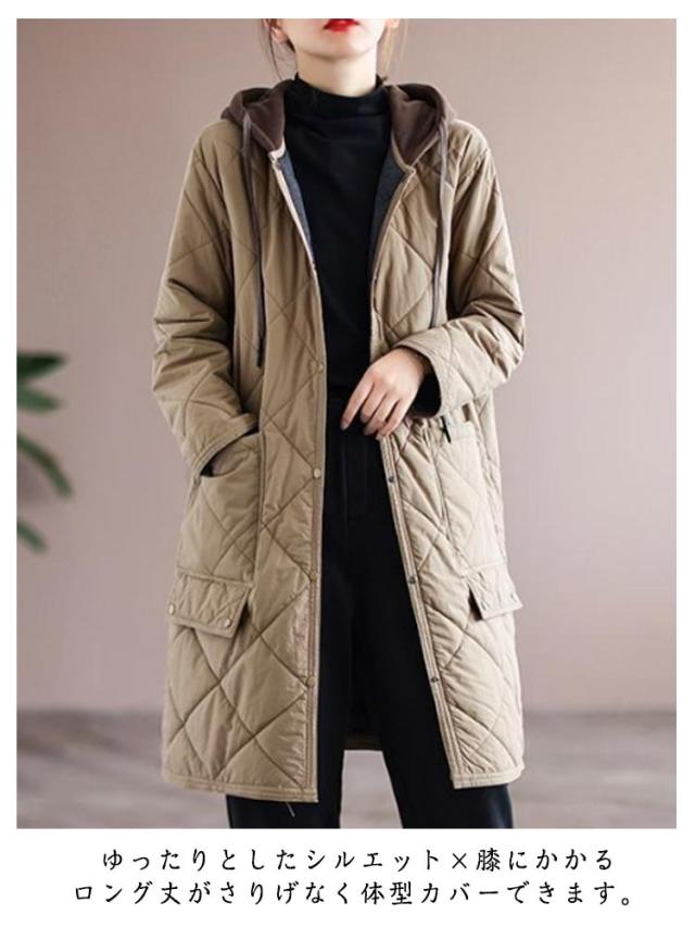 ベンチコート キルティングコート 中綿コート レディース 膝丈 ロングコート 防寒 アウター ゆったり 体型カバー カジュアル 冬服 フード付き 30代 40代 オーバーサイズ 送料無料