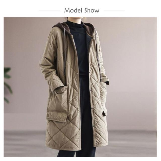 | 大きめのフード付きのロング中綿コート。 カジュアルからレイヤードスタイルまで幅広く着合わせられます。 ゆったりとしたシルエット×膝にかかるロング丈がさりげなく体型カバーできます。 カジュアルな印象のキルティング中綿も高級感のあるディティールで女性らしい上品なデザインに仕上がった一着です。 | |