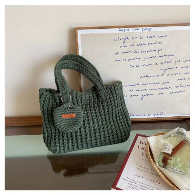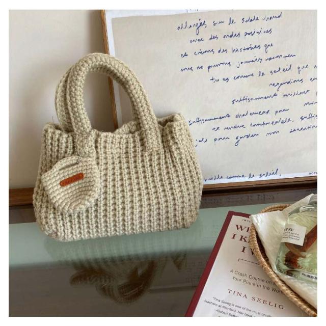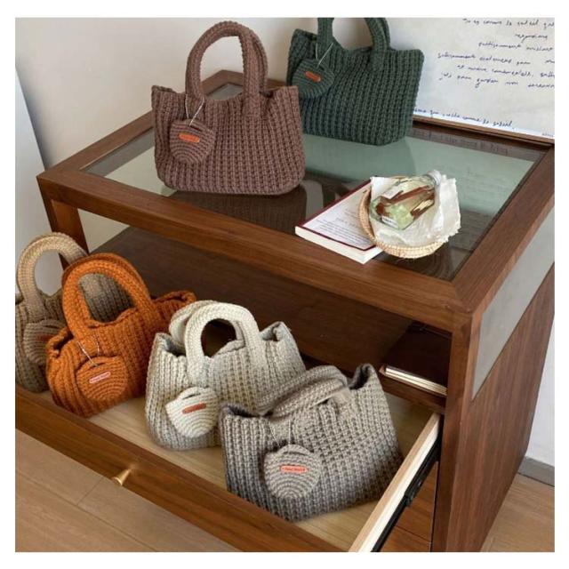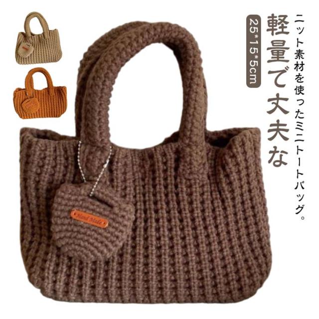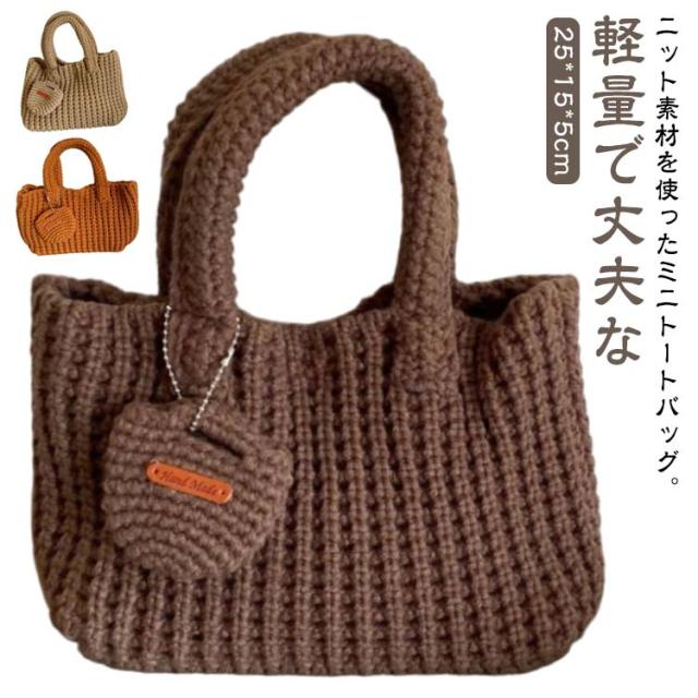 小さめ おしゃれ ミニ ニット トート レディース 軽い エコバッグ 冬 ニットトートバッグ 手提げバッグ ニットトート トートバッグ 可愛い 手提げ ミニバッグ 底マチあり ポーチ付 大容量 軽量 秋 韓国 カジュアル 通勤 通学 学生 ニットバッグ 無地 シンプル 【送無】