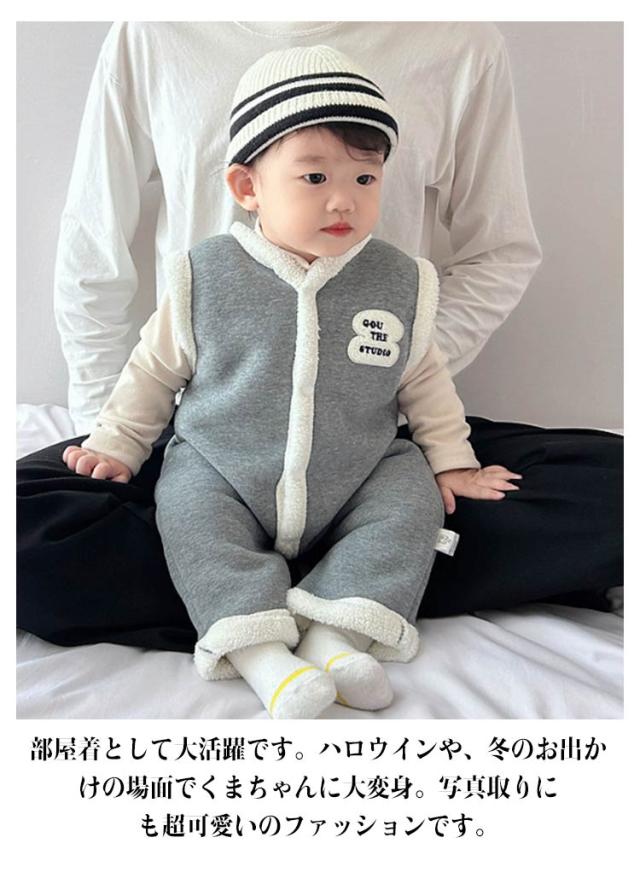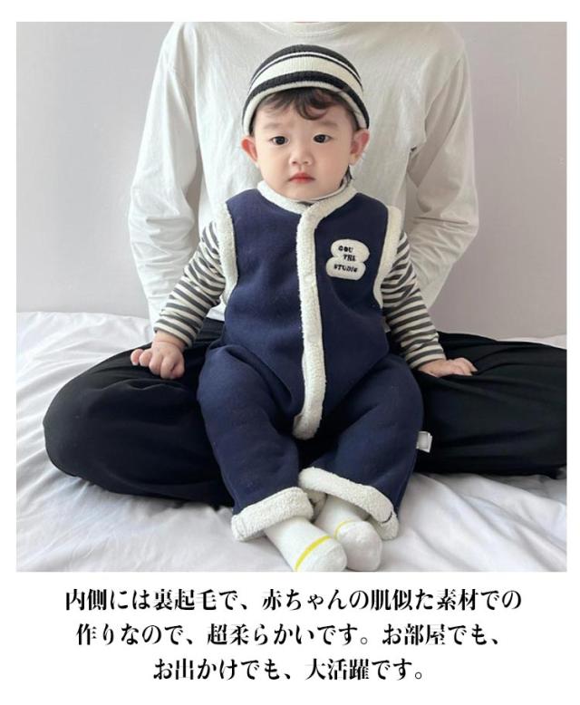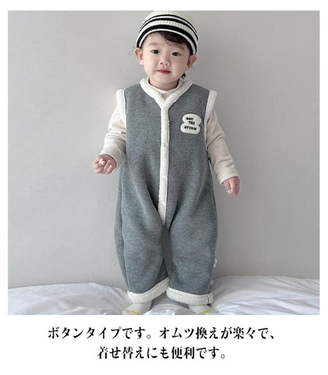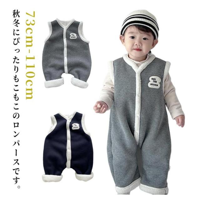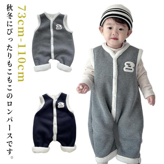 裏起毛 ジャンプスーツ カバーオール サロペット カバーオール ボア ベビー 防寒 あったか 暖かい 子供 女の子 男の子 袖なし 秋冬ノースリーブ 新生児 ロンパース キッズ もこもこ プレゼント 百日祝い 出産祝い 秋用 冬用 韓国風