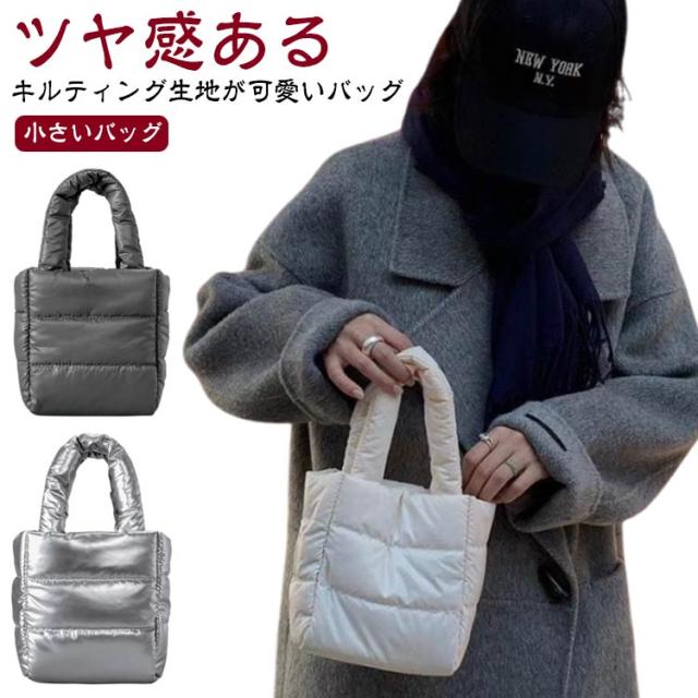 キルティング トートバッグ 斜め掛け キルティングトートバッグ ショルダー ショルダーバッグ ミニトート ミニ 小さめ ミニバッグ 軽い バッグ 底マチあり 小さめバッグ 軽量 キルト キルティング 大人 カジュアル つや 艶あり おしゃれ かわいい シルバー
