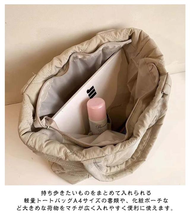 肩掛け トートバッグ キルティング ショルダー 大きめ 大容量 旅行 キルティングトートバッグ 軽量 A4 軽い 底マチあり ファスナー ポケット付き マザーズバッグ トート 通学 通勤 ショルダーバッグ 無地 シンプル 大人 カジュアル おしゃれ