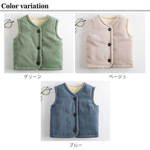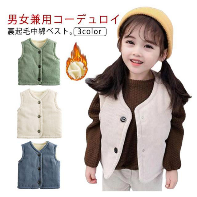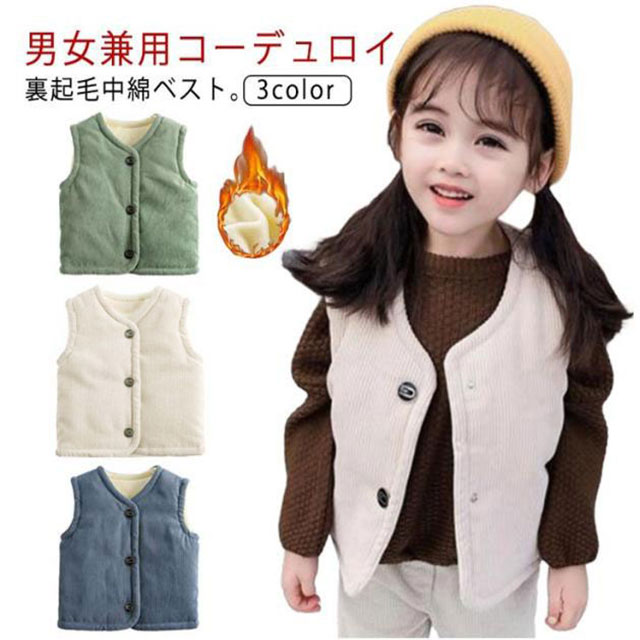 厚手 アウター ベスト トップス 裏ボア 中綿ベスト 防寒 コーデュロイ ノースリーブ 女の子 男の子 子供服 ベビー服 コーデュロイ ジャケット 子ども 羽織り 上着 冬 無地 秋 キッズ 暖かい カジュアル おしゃれ かわいい お出かけ 通園 通学