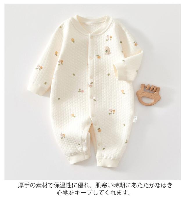 ロンパース 厚手 冬 長袖 ベビー服 女の子 男の子 カバーオール かわいい 綿 コットン キルティング 赤ちゃん服 子供服 新生児 おしゃれ 可愛い 防寒 暖かい ルームウェア 部屋着 パジャマ 66 73 80 90 出産祝い プレゼント 春秋冬 送料無料 くま 花柄 アニマル柄 送料無料