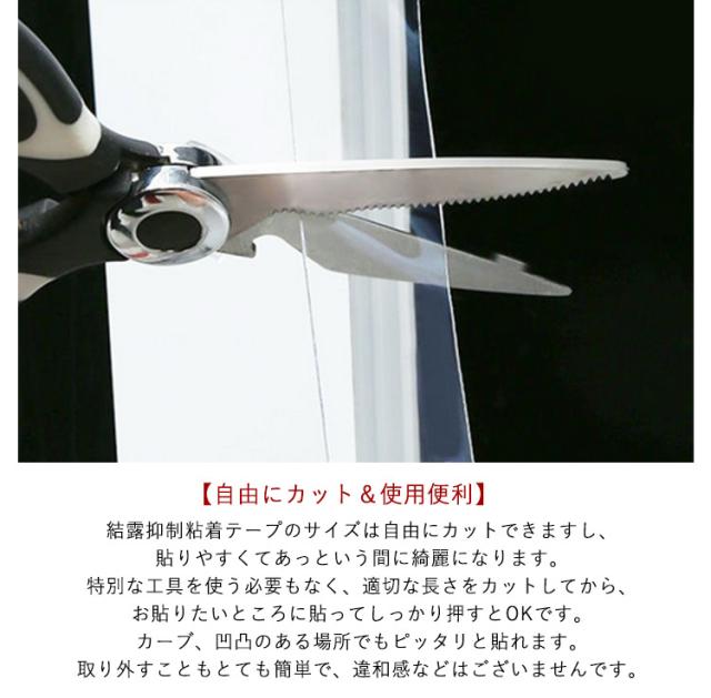 | 幅5cm/幅8cm/幅10cmの幅広い隙間テープで気密性が高い。 【すきま風対策&冷暖房を効率的に】窓防寒対策テープは窓からの隙間風が気になる玄関、窓のサッシ、ガラス戸、ドアの下部にご利用いただけます。貼るだけで隙間からの花粉、ホコリ、小虫、蚊などの侵入をしっかりブロックします。その上、隙間テープを貼ることで外からの空気を防ぎ屋根や床、壁、窓から冷気や暖気を逃さず、部屋の温度を保つことができます。お部屋の温度が保たれることによって、室内の冷暖房効率をグーンとアップして、電気代の節約にもなります。 【透明でインテリアに損なわない】透明のすき間風防止テープで、目立ちにくいので美観を損ねる心配がないのもいいと思います。 【粘着力よく、跡が残らない】高品質隙間テープは強い引き裂き性、耐久性、耐水性、耐熱性の特徴があります。粘着性は高くて、長持ちできます。剥がした跡が残りにくい素材を使用しているため、繰り返し剥がしてものりが残らないです。 【自由にカット&使用便利】結露抑制粘着テープのサイズは自由にカットできますし、貼りやすくてあっという間に綺麗になります。特別な工具を使う必要もなく、適切な長さをカットしてから、お貼りたいところに貼ってしっかり押すとOKです。カーブ、凹凸のある場所でもピッタリと貼れます。取り外すこともとても簡単で、違和感などはございませんです。 | |