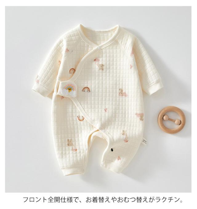 ロンパース ベビー 長袖 キルト カバーオール 女の子 男の子 ベビー服 あったか 厚手 新生児 赤ちゃん服 子供服 お出かけ 綿 コットン 秋 冬 防寒 暖かい パジャマ 退院着 前開き アニマル柄 おしゃれ 可愛い 出産祝い プレゼント 送料無料