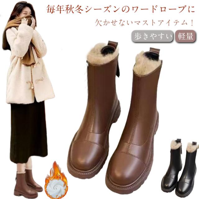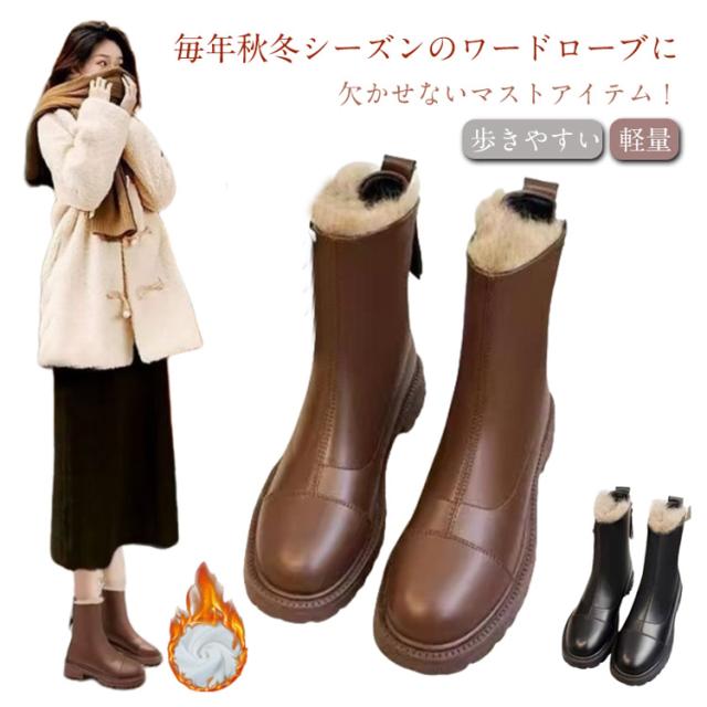ブーツ レディース シューズ 靴 革靴 合皮 フェイクレザー ショートブーツ 裏起毛 ショート丈 アンクル丈 ジップ 裏ボア バックジップ バックファスナー 履きやすい 厚底 防水 軽い 軽量 歩きやすい かっこいい きれいめ