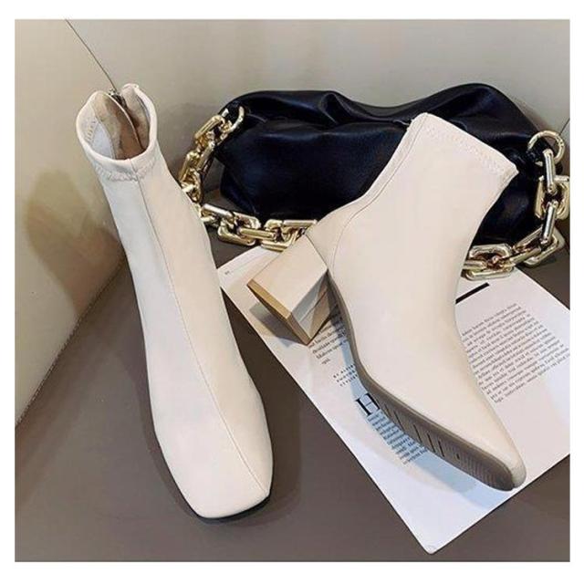 | なルックスに、スクエアトゥがエッジを利かせて、足元をスッキリと見せてくれるショートブーツ。 太めのチャンキーヒールデザインで安定感があり、甘過ぎないオトナ女子のお洒落心をくすぐるポイントにもなる1足 すっきりとしたフォルムとシーズンライクな色展開がレディな印象に、どんなスタイルにも合わせやすい万能アイテム。 | |