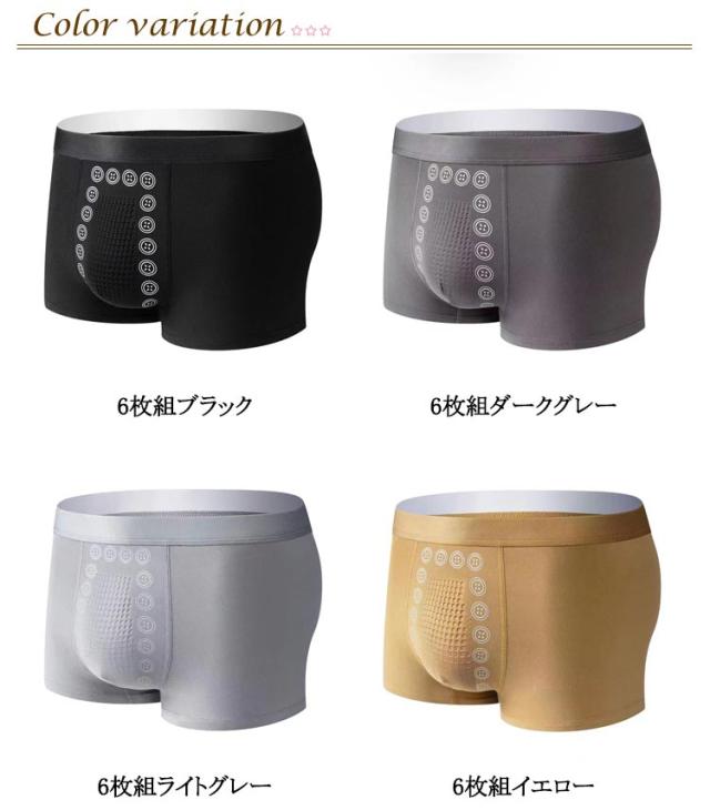 メンズ マッサージの磁気下着 ショーツ メンズパンツ 6枚セット ボクサー アンダーウェア 6枚セット 通気性 春夏秋冬 下着 抗菌防臭 ボクサーパンツ 誕生日 柔らかい 磁気パンツ メンズ下着 機能性下着 父の日 ギフト プレゼント シニア 大きいサイズ