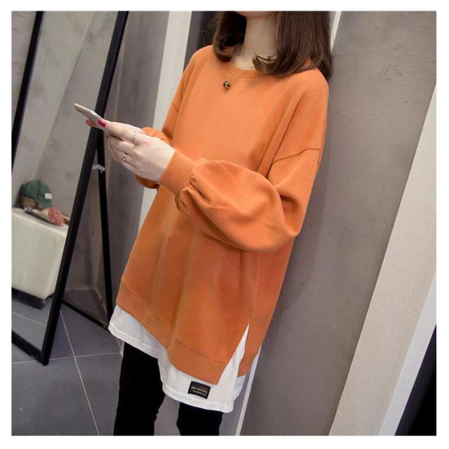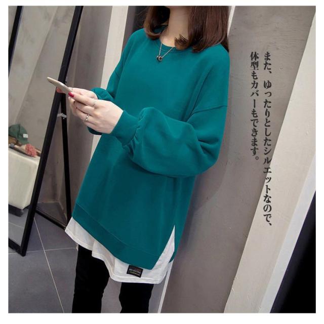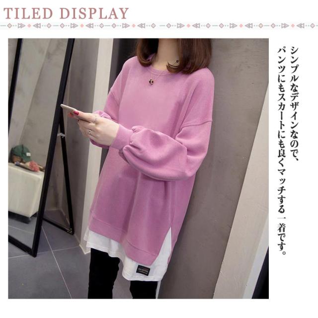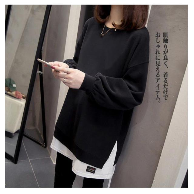 レイヤード風 長袖 ロング丈 トップス 春秋 ラウンドネック レイヤード風 冬 ロングT インナー M 春 秋冬 重ね着風 Tシャツ XL 春服 秋服 ゆったり カジュアル 大きいサイズ トレーナー L 秋 2XL 3XL 4XL ブラック ピンク ダークブルー オレンジ