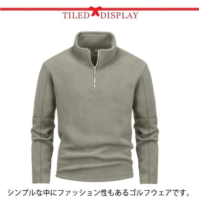 カットソー 無地 ゴルフ フリース 裏起毛 トレーナー 長袖 ハーフZIP 暖かい ハイネック ボアフリース フリース ゴルフウェア ポロシャツ プルオーバー 防寒 ボアトレーナー 厚手 ハーフジップ アウトドア キャンプ スポーツ あたたかい トップス 秋 冬