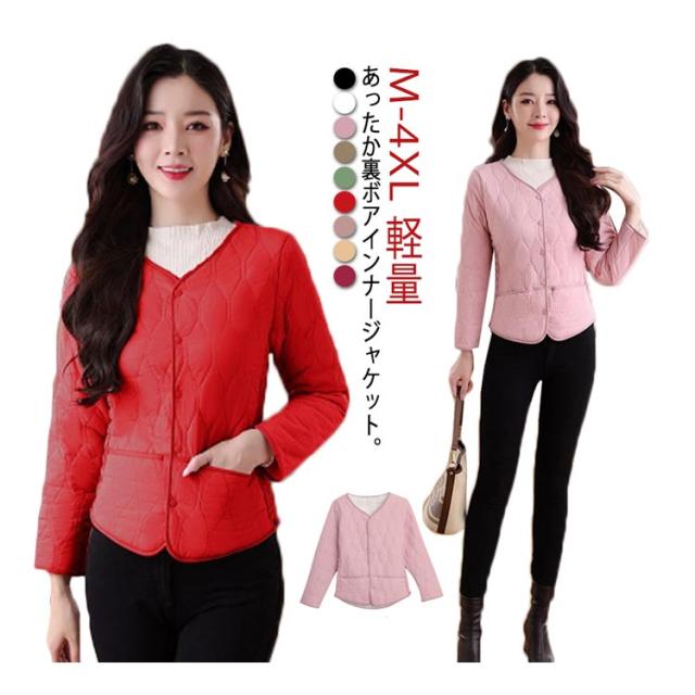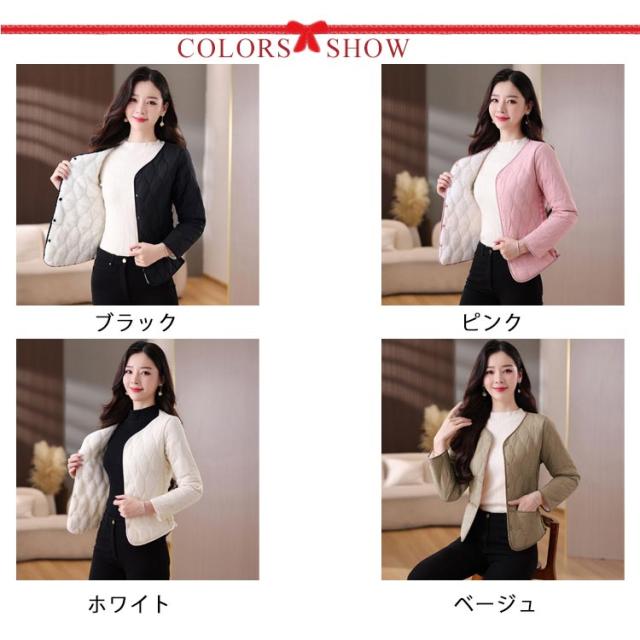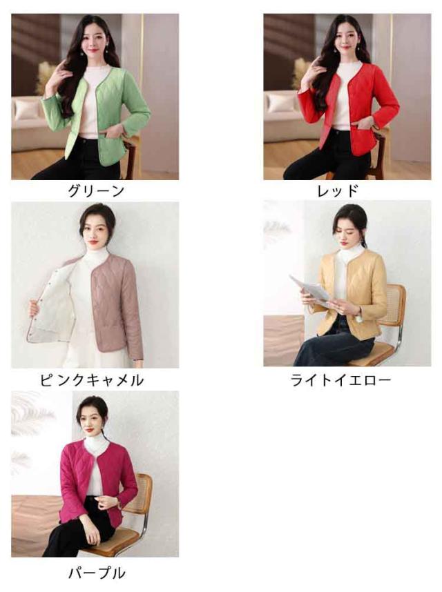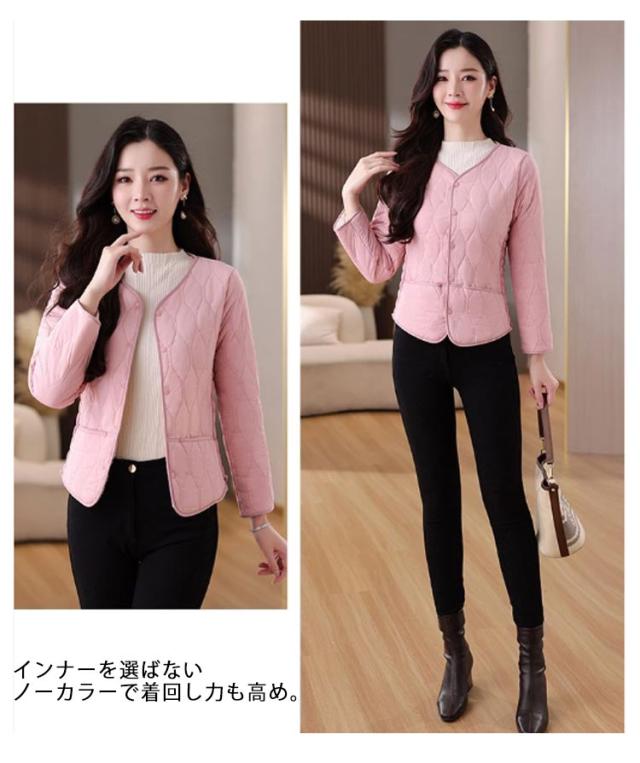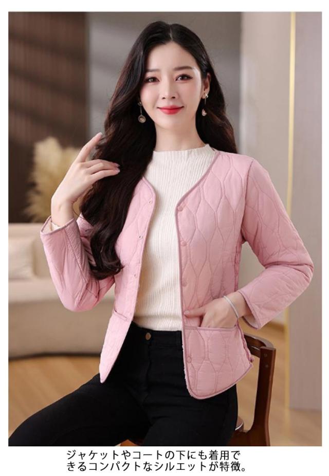 インナージャケット レディース 中綿 ノーカラー ジャケット ラウンドネック コート 可愛い 軽量 ジャケット インナー 長袖 ショート ライトアウター インナージャケット ノーカラージャケット キルティング ジャケット 羽織り 上着 長袖 中綿 防寒 秋 冬 送料無料