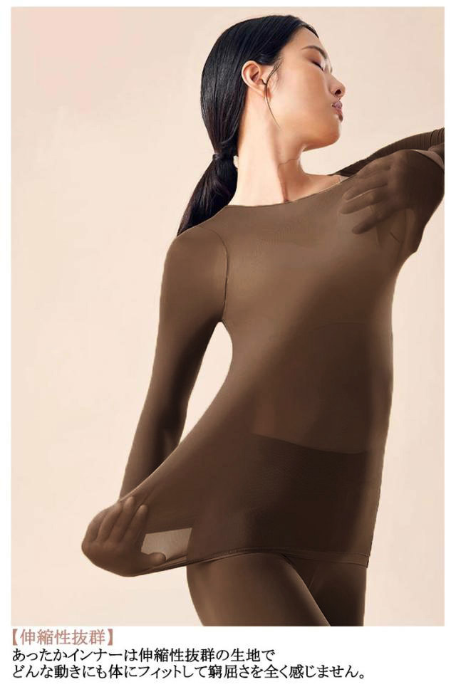 | 【あったか・極薄インナー】 【フィット感】ストッキングのようなフィット感!体にソフトに密着して暖かい&かさばらない! 【薄くて軽い】より薄くて、軽く、ソフトな肌ざわりが心地よさを引き立てます。 【伸縮性抜群】あったかインナーは伸縮性抜群の生地でどんな動きにも体にフィットして窮屈さを全く感じません。 | |