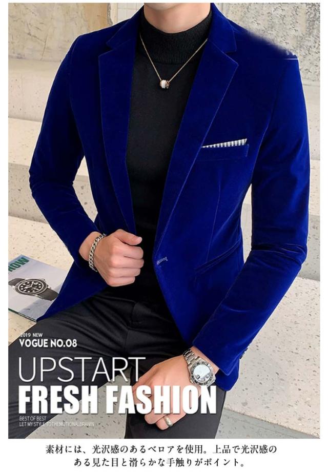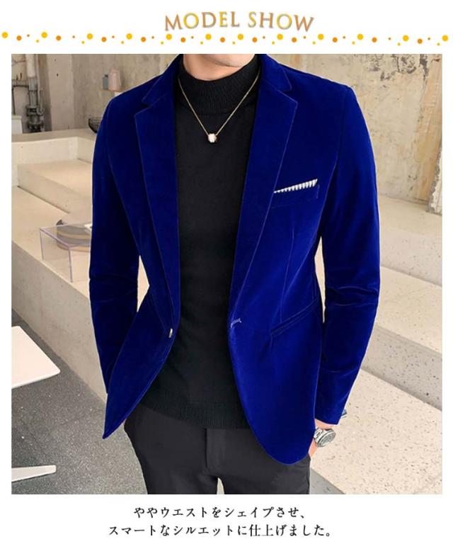 テーラードジャケット ベロア メンズ 秋 冬 ジャケット アウター 厚手 メンズジャケット テーラード スーツ 一つボタン ビジネス カジュアル ベロアジャケット スリム 細身 上品 光沢感 ドレススーツ パーティースーツ 30代 40代 50代 大きいサイズ 【送料無料】