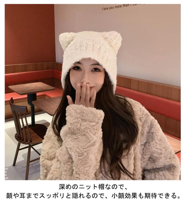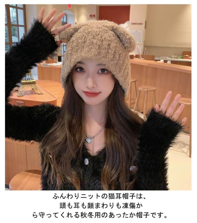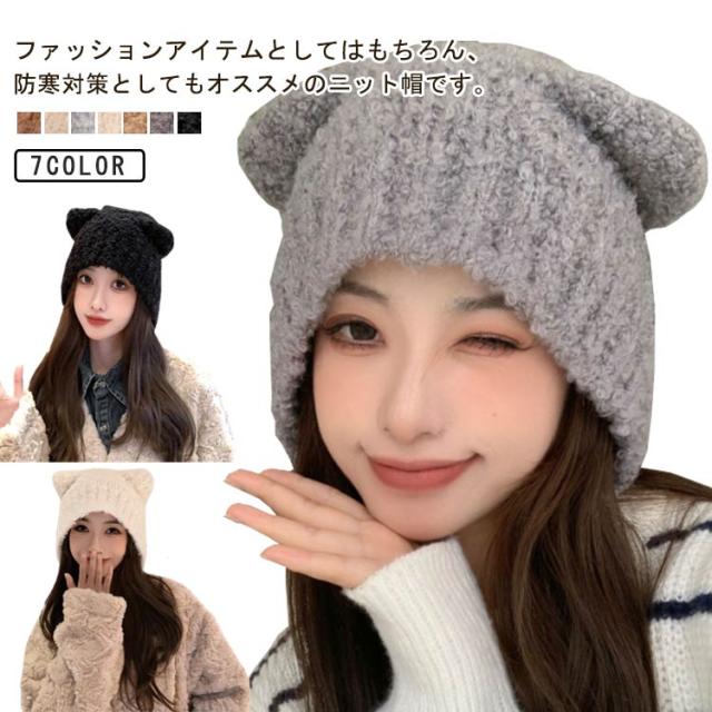 イヤーカバー 猫耳 ネコ耳 ニット帽 あったか ニットキャップ 秋冬 帽子 耳あて レディース 保温 ハット もこもこ あったか ふわふわ 伸縮性 防寒 アウトドア ニット帽 カジュアル 小顔効果 可愛い