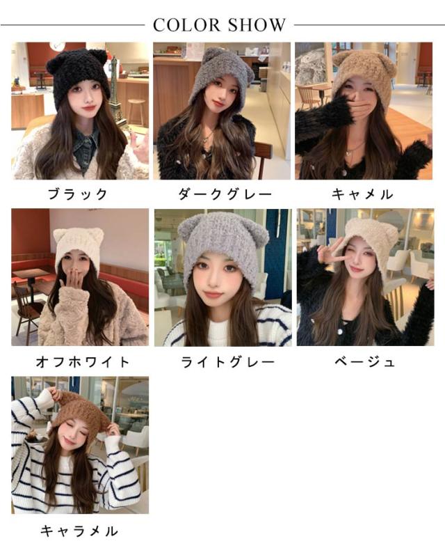 | ファッションアイテムとしてはもちろん、防寒対策としてもオススメのニット帽です。 フワフワで柔らかく編み込まれているので、快適なかぶり心地です。 深めのニット帽なので、顔や耳までスッポリと隠れるので、小顔効果も期待できる。 ふんわりニットの猫耳帽子は、頭も耳も顔まわりも凍傷から守ってくれる秋冬用のあったか帽子です。 伸縮性に優れているので、どんな頭のサイズにもフィットします。 持ち運びも楽ちん!サッと折りたためてカバンに収納できて外出先で大変便利! | |