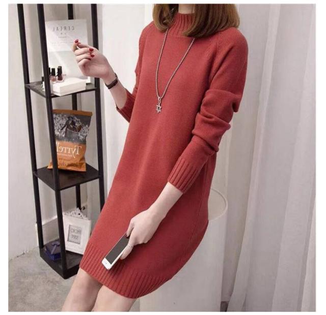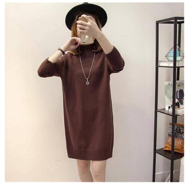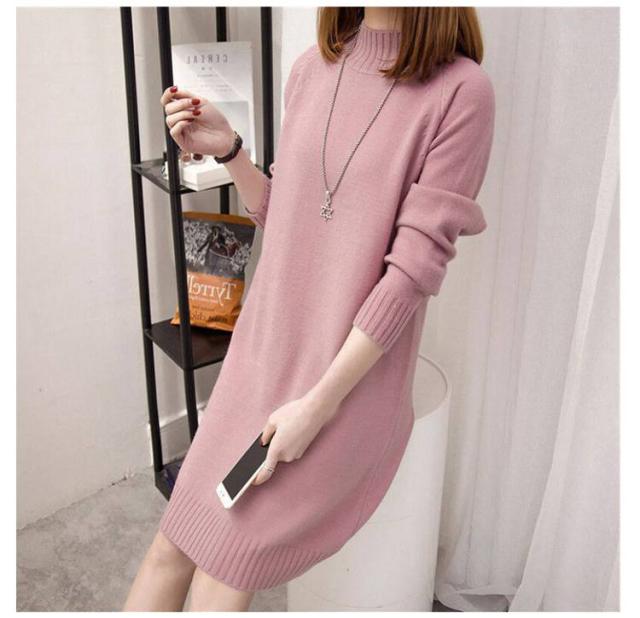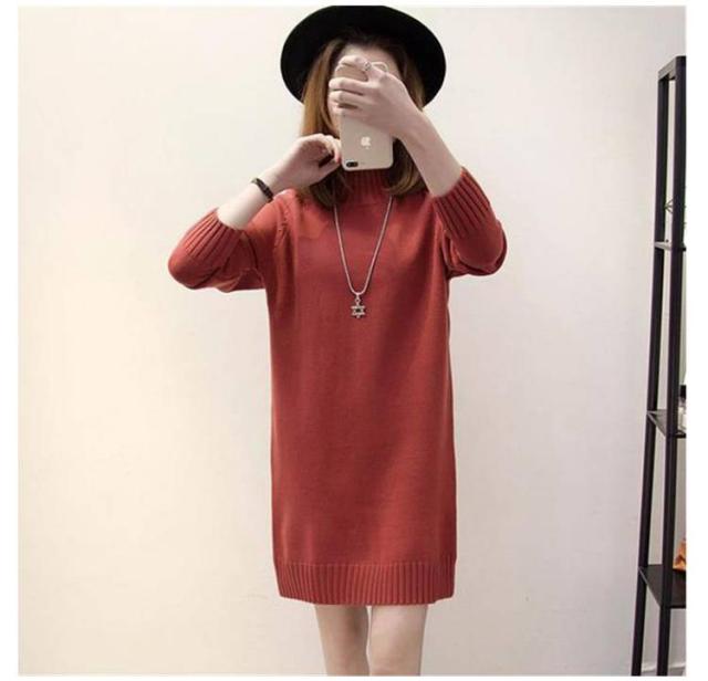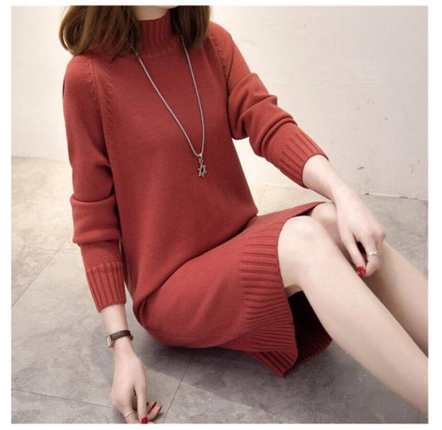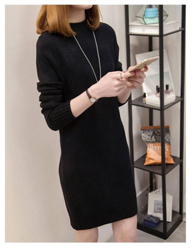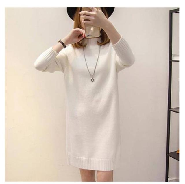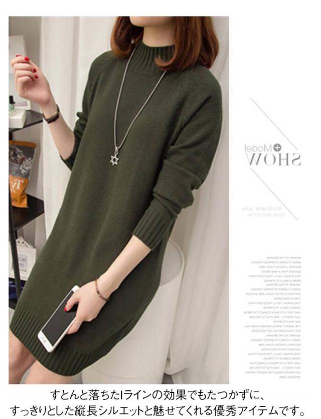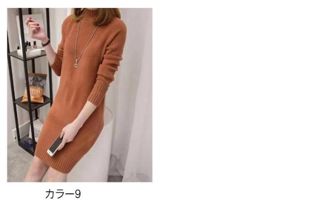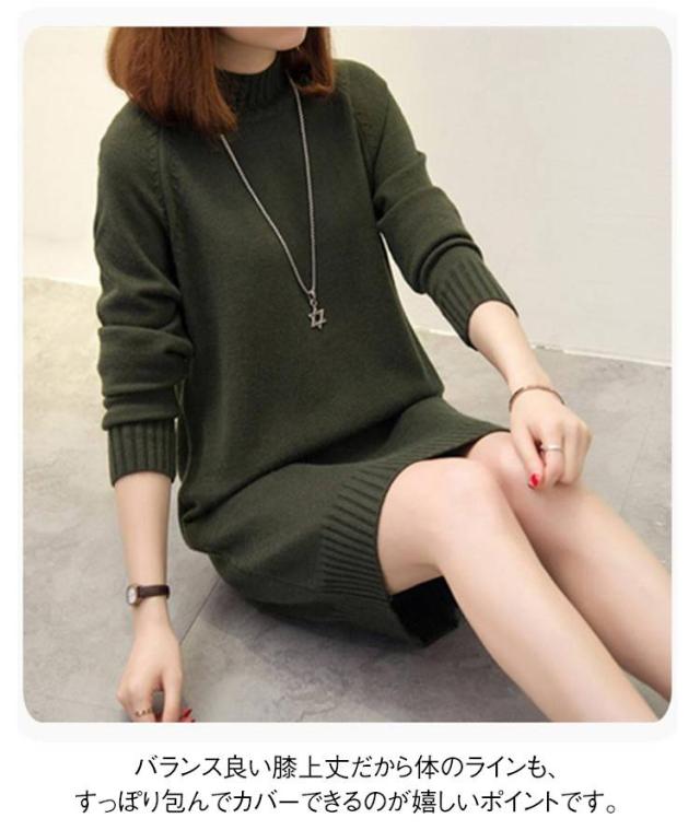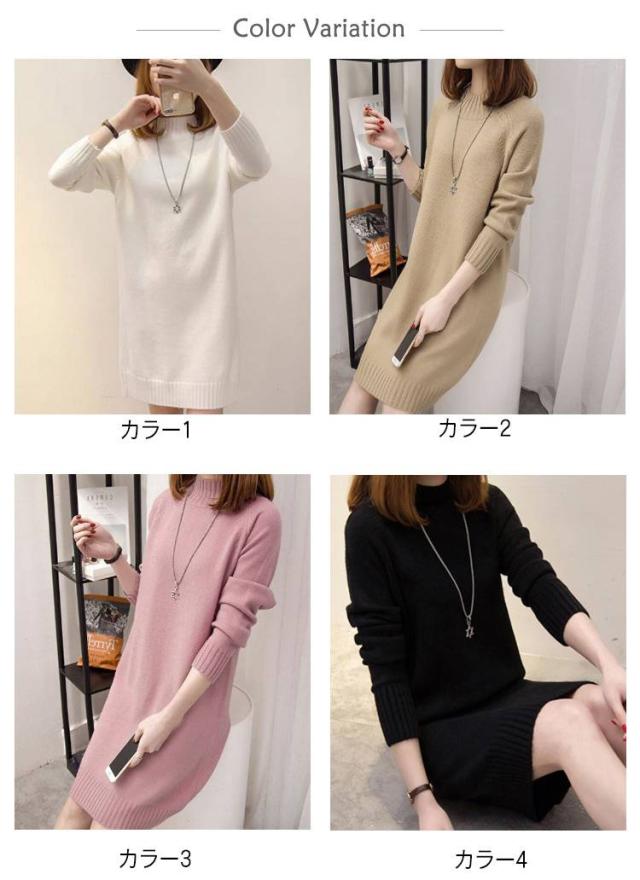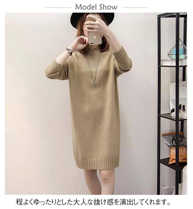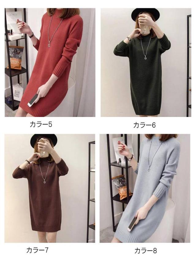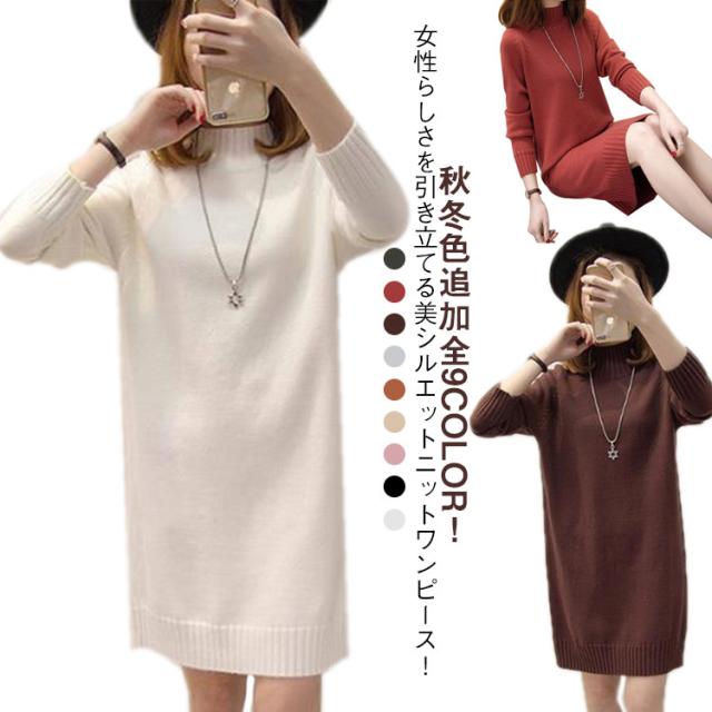 ニットワンピ チュニック セーター ニットワンピース 膝上丈 チュニックワンピース セーター レディース ボトルネック プチハイネック ワンピース 秋冬 タイト 30代