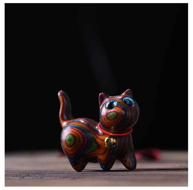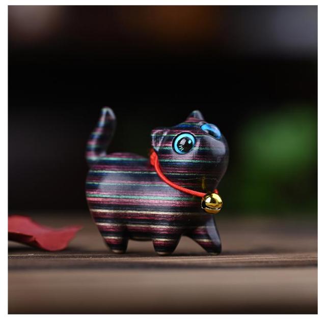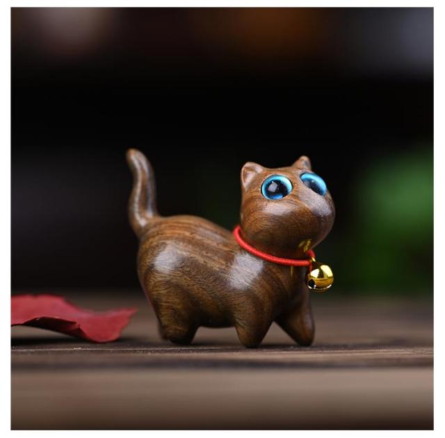ネコ 置物 お散歩ネコの置物 手作り 猫 ねこ 木彫り 木製 オブジェ 猫の置物 ミニチュア デスク 黒 ハンドメイド ネコ 癒し グッズ