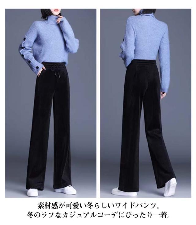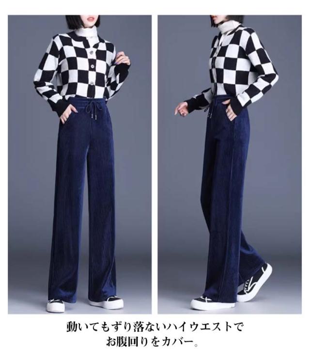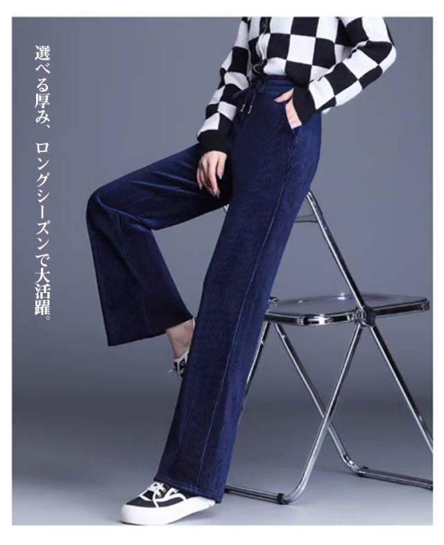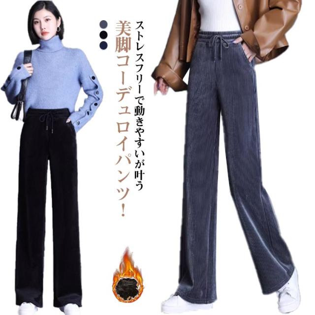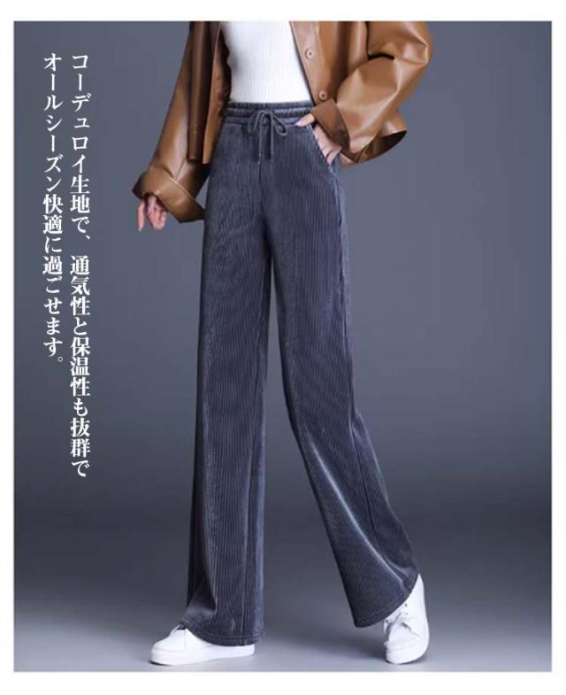 コーデュロイパンツ ワイドパンツ パンツ 極暖 着?せ ロング 美脚 コーデュロイ 裏起毛なし リブ レディース ズボン 長ズボン ストレートパンツ イージーパンツ 裏起毛 ワイド ゆったり コーデュロイパンツ ウエストゴム 大きいサイズ カジュアル 部屋着 リラックス ギフト