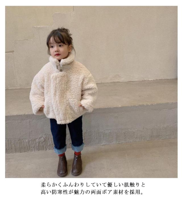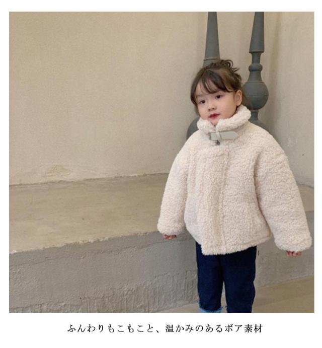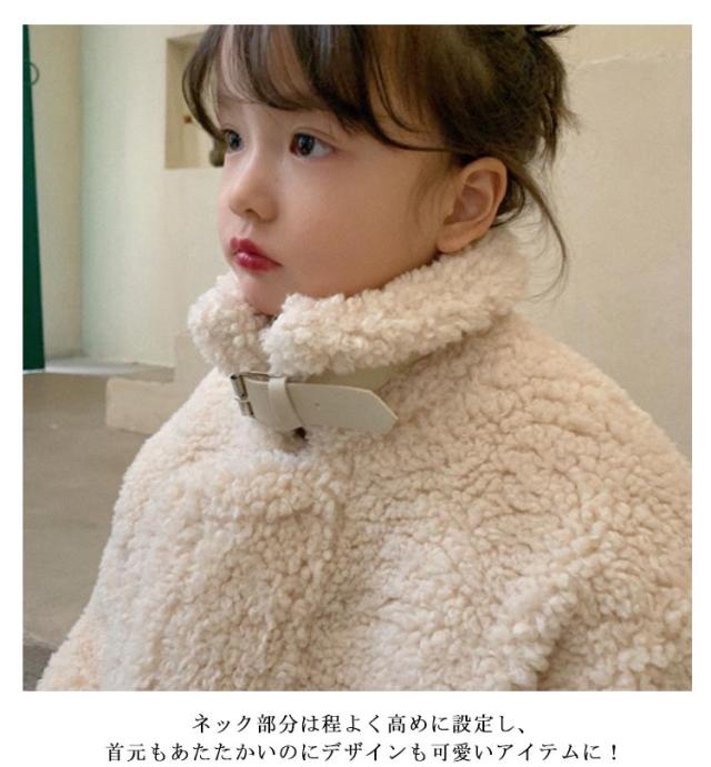 立ち襟 アウター かわいい ボアコート ボアアウター 子供服 キッズ ジャケット スタンドカラー ふわふわ 厚手 秋 冬 シープボア もこもこ ボアジャケット ジャンパー 防寒 保温 女の子 通園 通学 おしゃれ 暖かい ブルゾン 無地